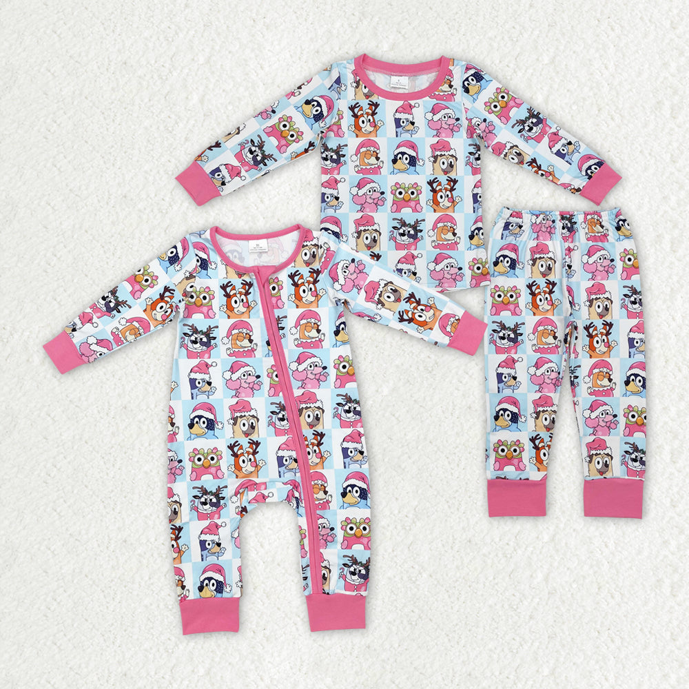 Sibling Baby Girls Christmas Dogs Pink Rompers Pajamas