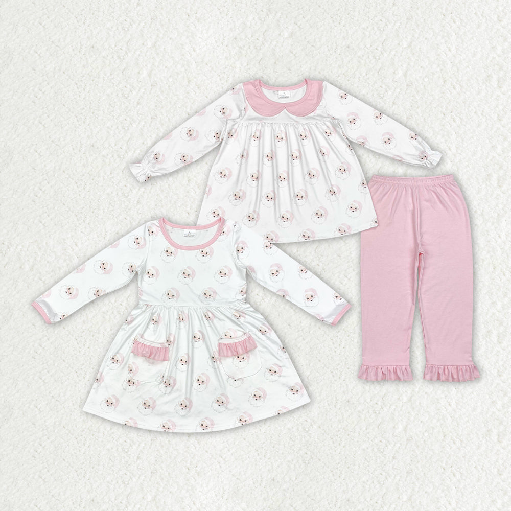 Sibling Baby Girls Christmas Pink Santa Top Dresses Clothes Sets