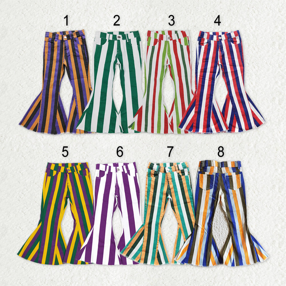 Sibling Baby Girls Colorful Stripes Bell Bottom Denim Jeans Pants
