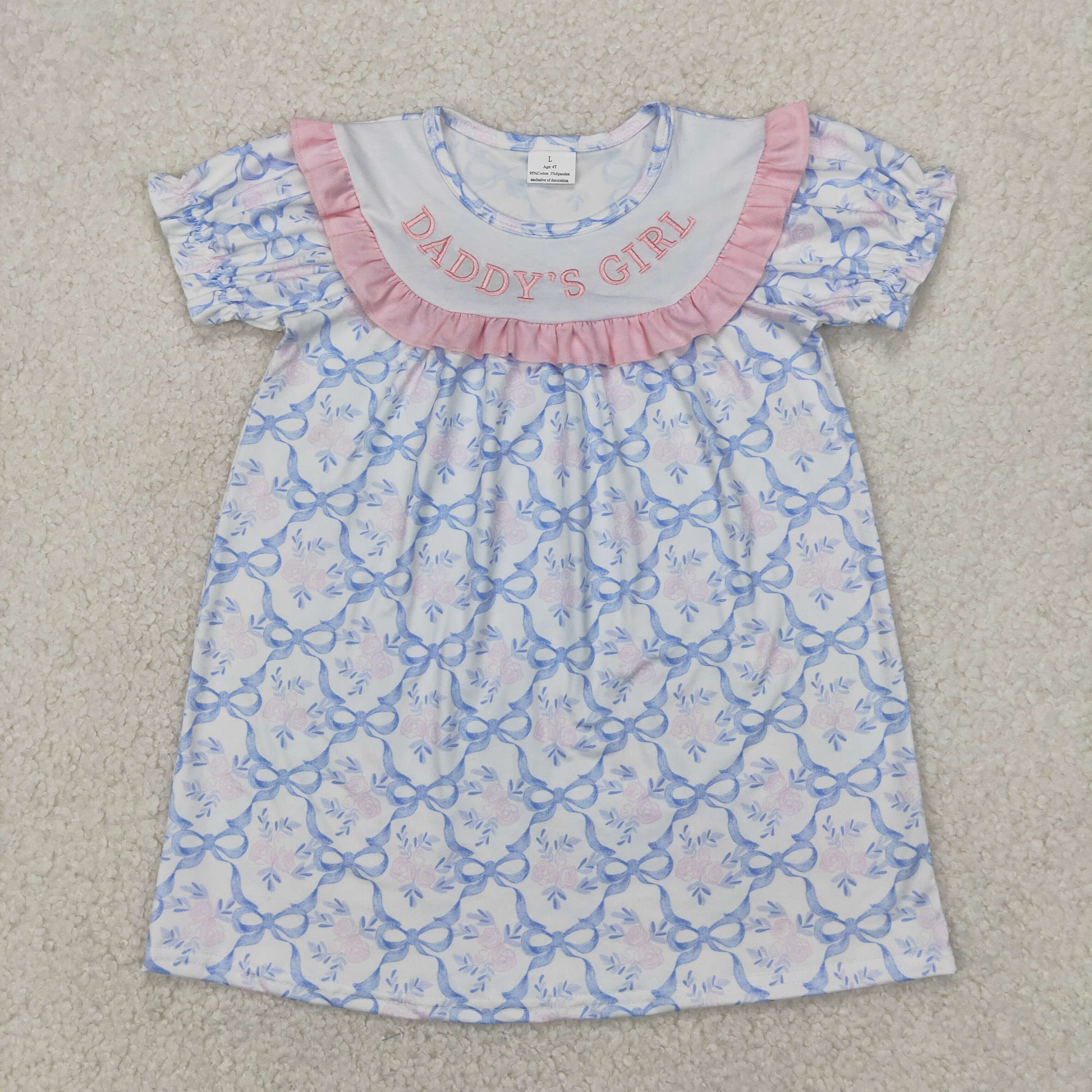 Sibling Baby Girls Embroidery DADDY'S GIRL Bows Floral Plaid Knee Length Dress Rompers