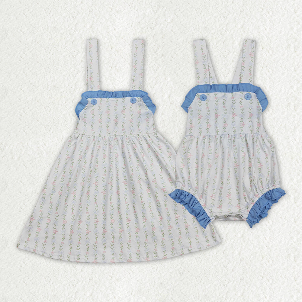 Sibling Baby Girls Flowers Leaves Ruffle Rompers Dresses