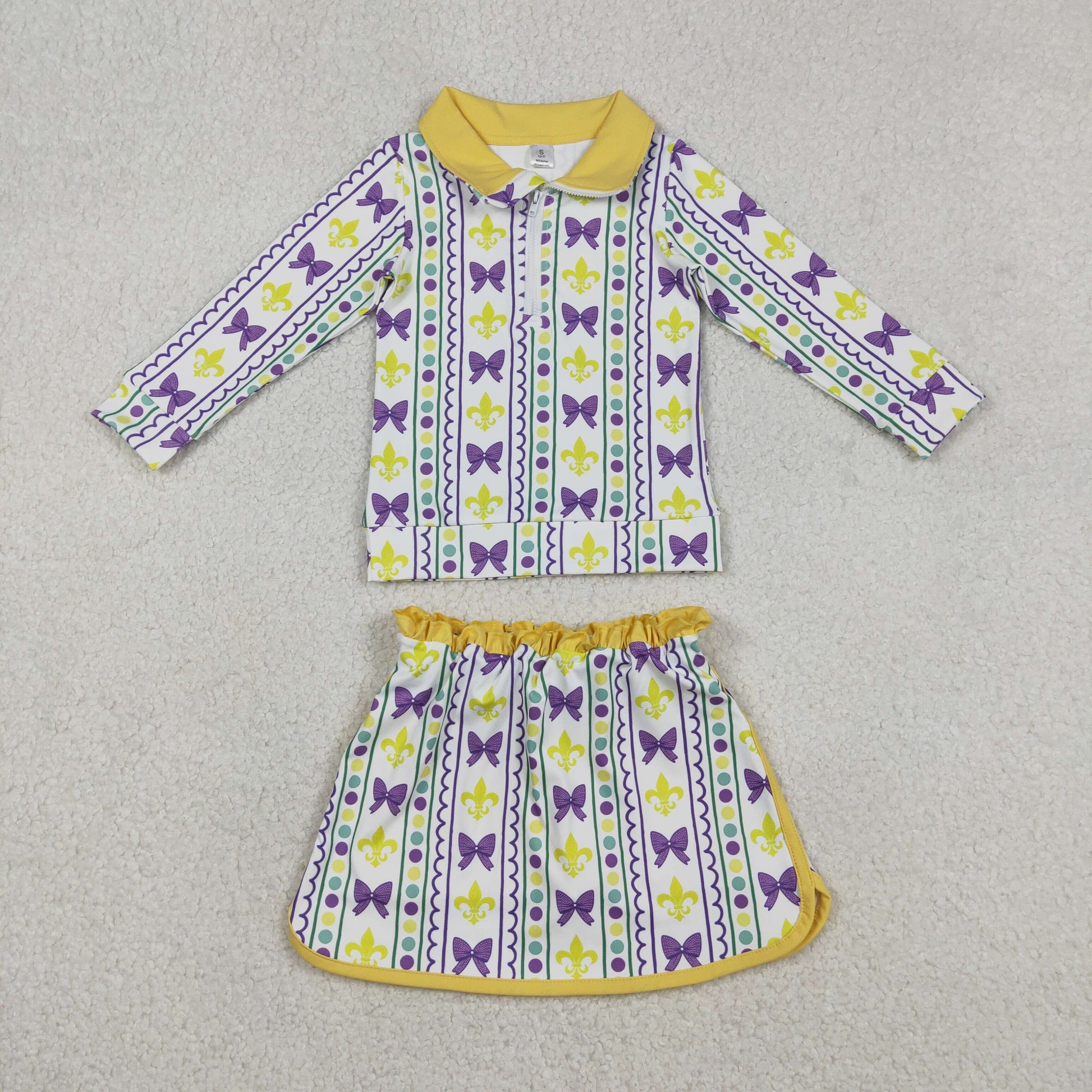 Sibling Baby Girls Mardigras Bows Anchors Stripe Yoga Active Shorts Knee Length Dress Skorts Clothes Sets