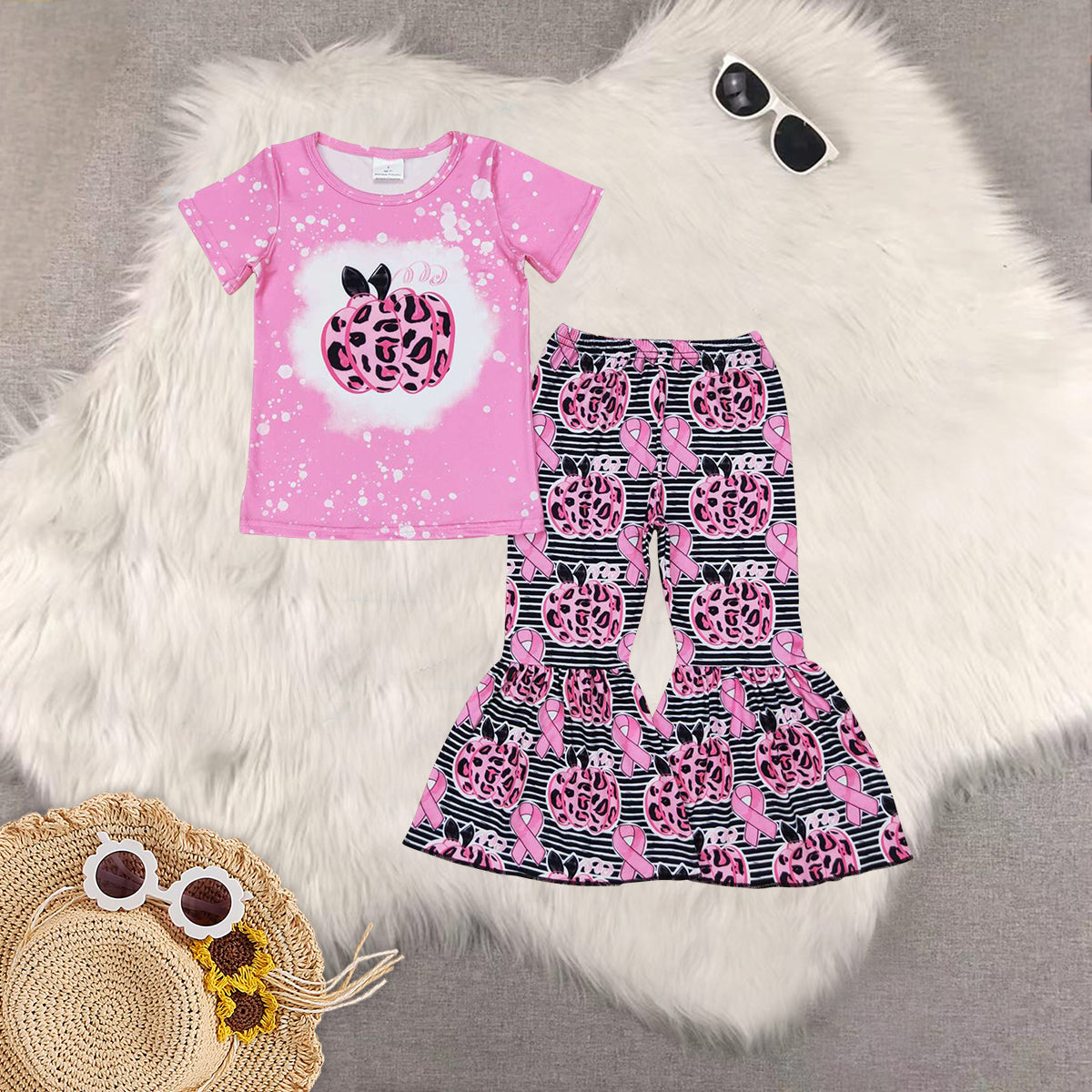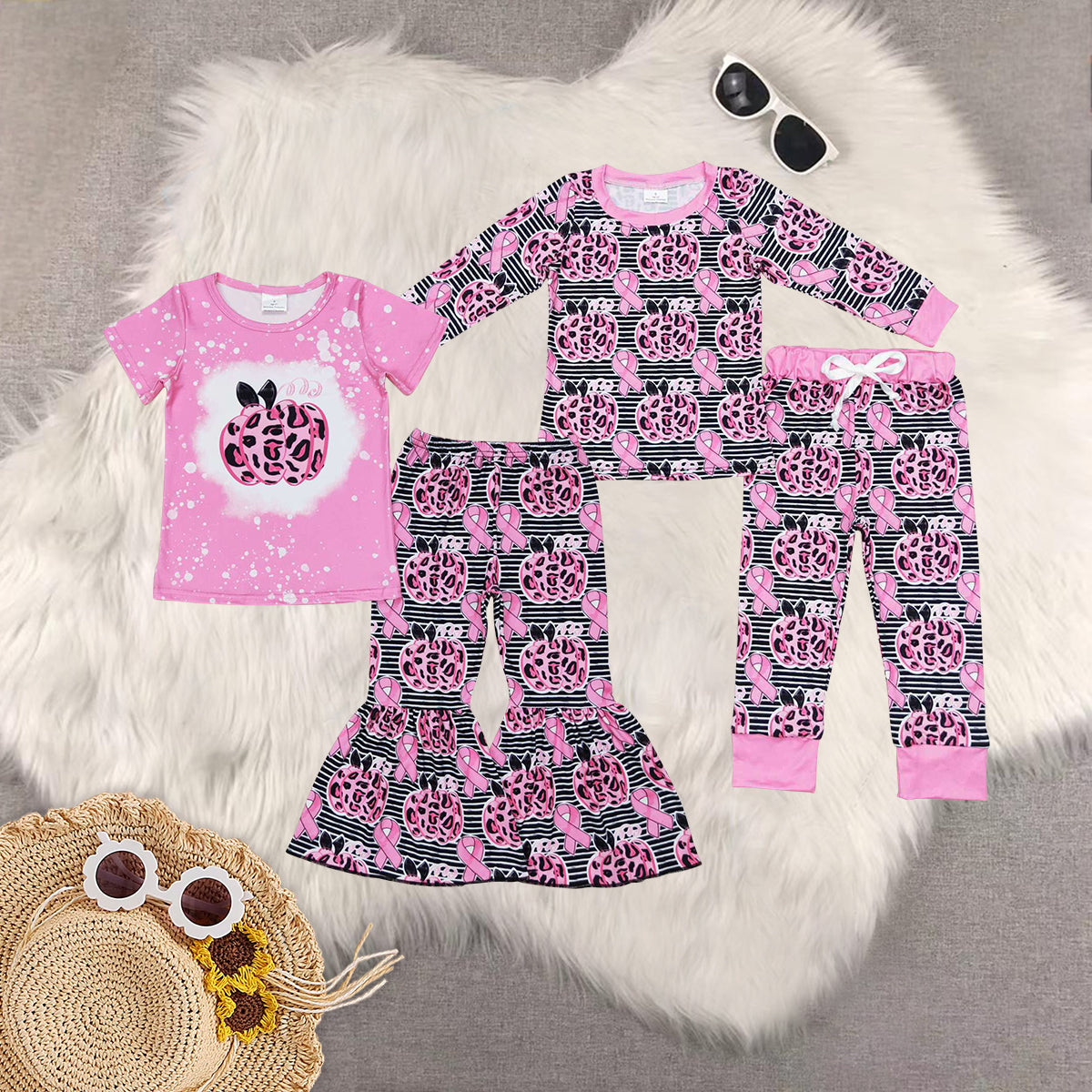 Sibling Baby Girls Pink Leopard Pumpkin Shirt Bell Bottom Pants Pajamas Clothes Sets