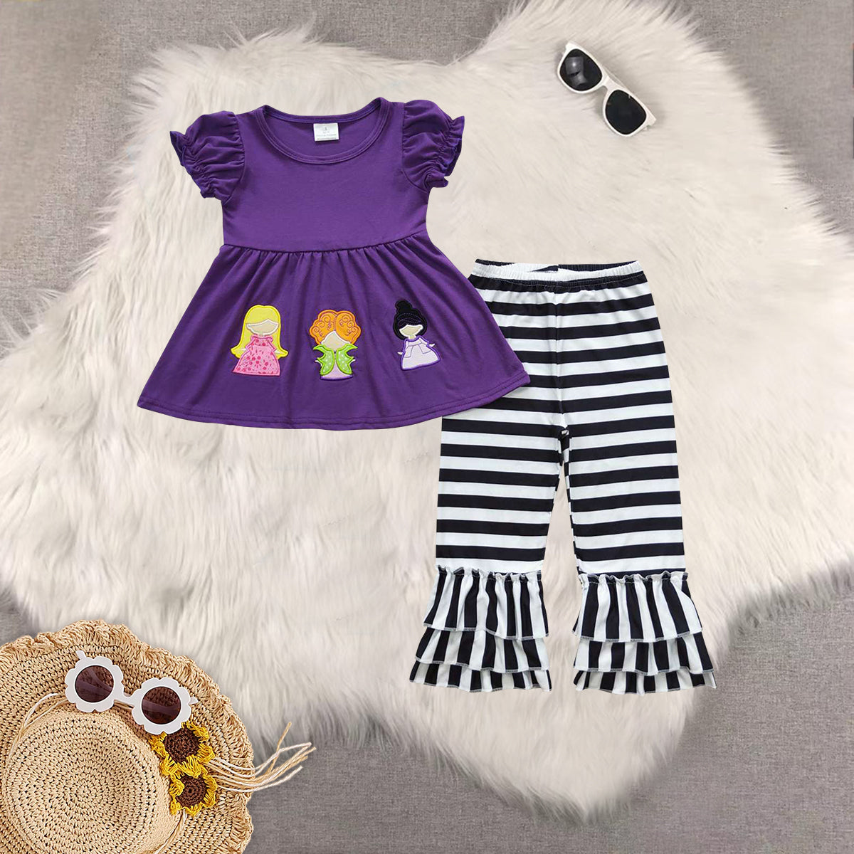 Sibling Baby Girls Purple Princess Tunic Stripe Bell Bottom Pant Set Dresses