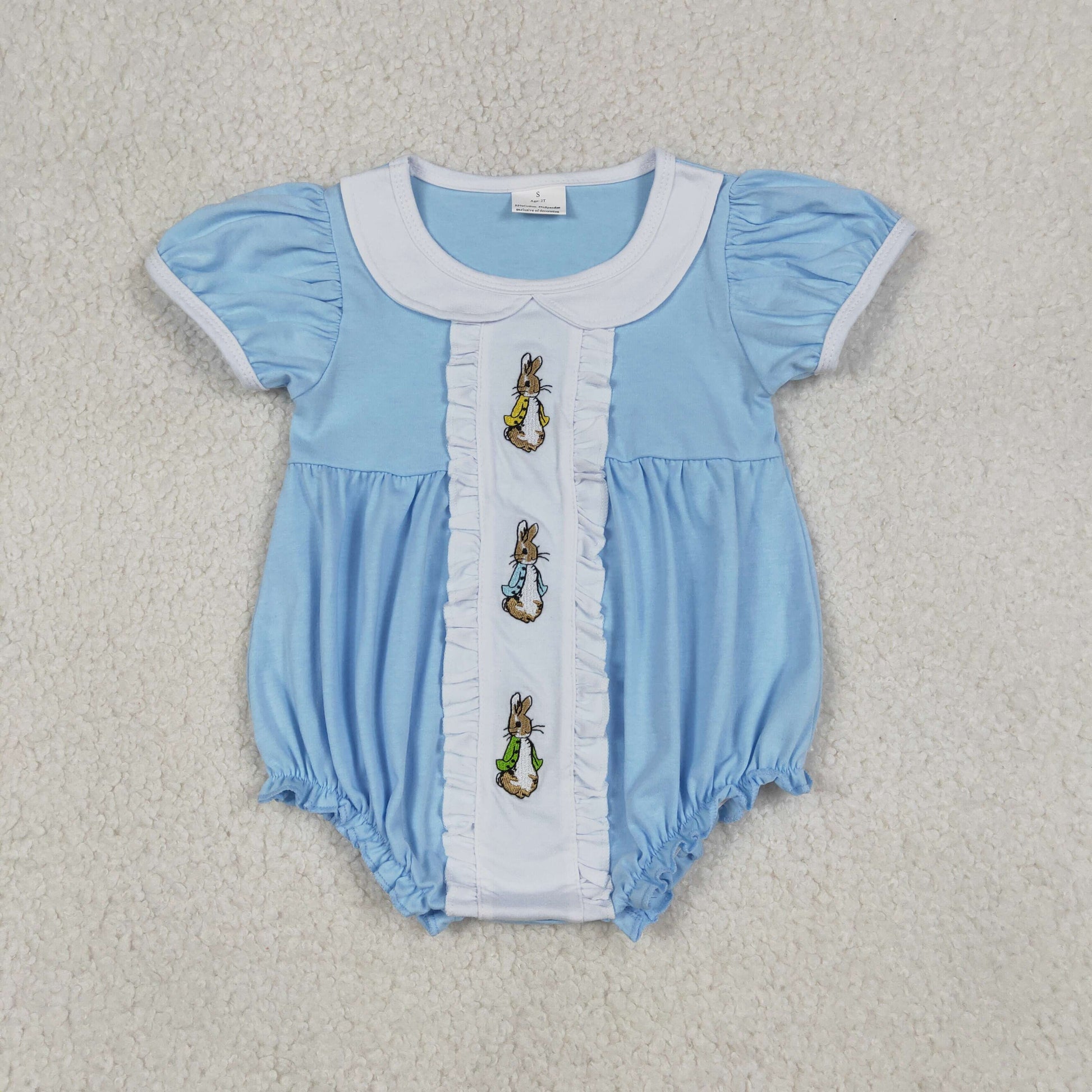 Sibling Baby Girls Short Ruffle Sleeve Embroidery Rabbits Easter Knee Length Dresses Ruffle Romper