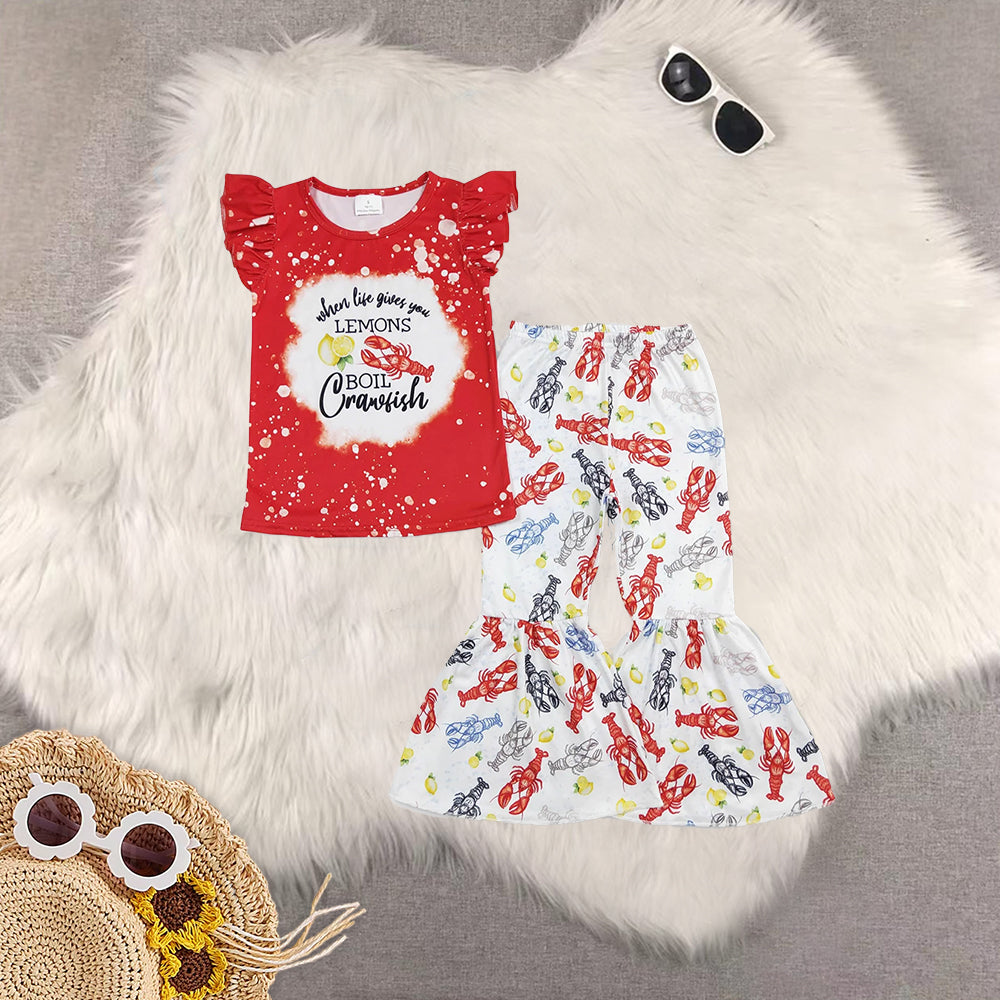 Sibling Baby Girls Short Sleeves Crayfishes Lemons Top Bell Bottom Pant Clothes Sets