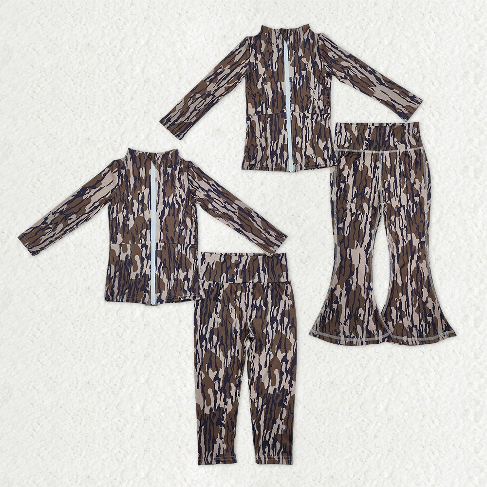 Sibling Baby Girls Southern Olive Camo Zip Pockets Jackets Pants Yoga Active Clothes Sets
