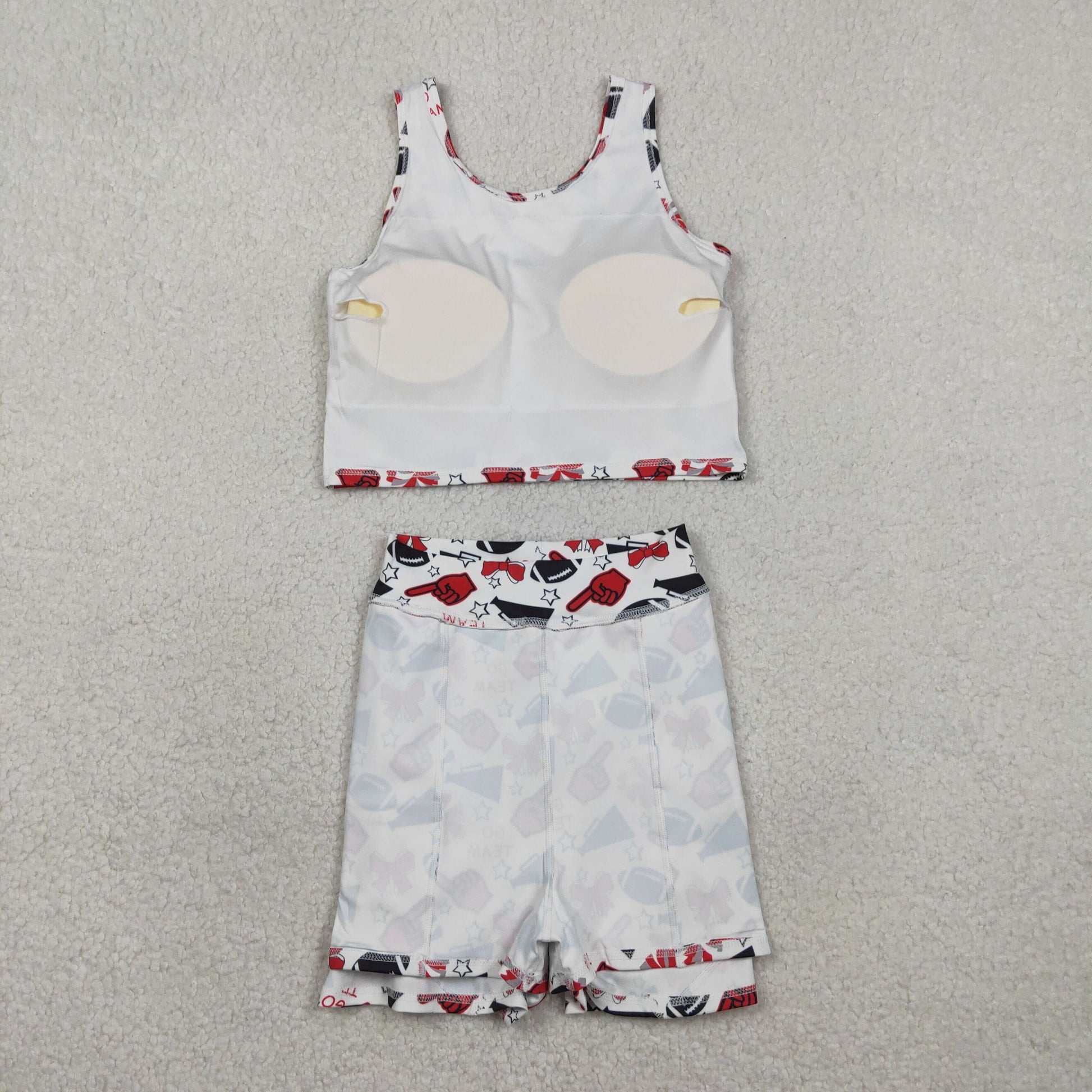Sibling Baby Girls Team Football Cheer Bows Vest Top Short Skirts Yoga Sets
