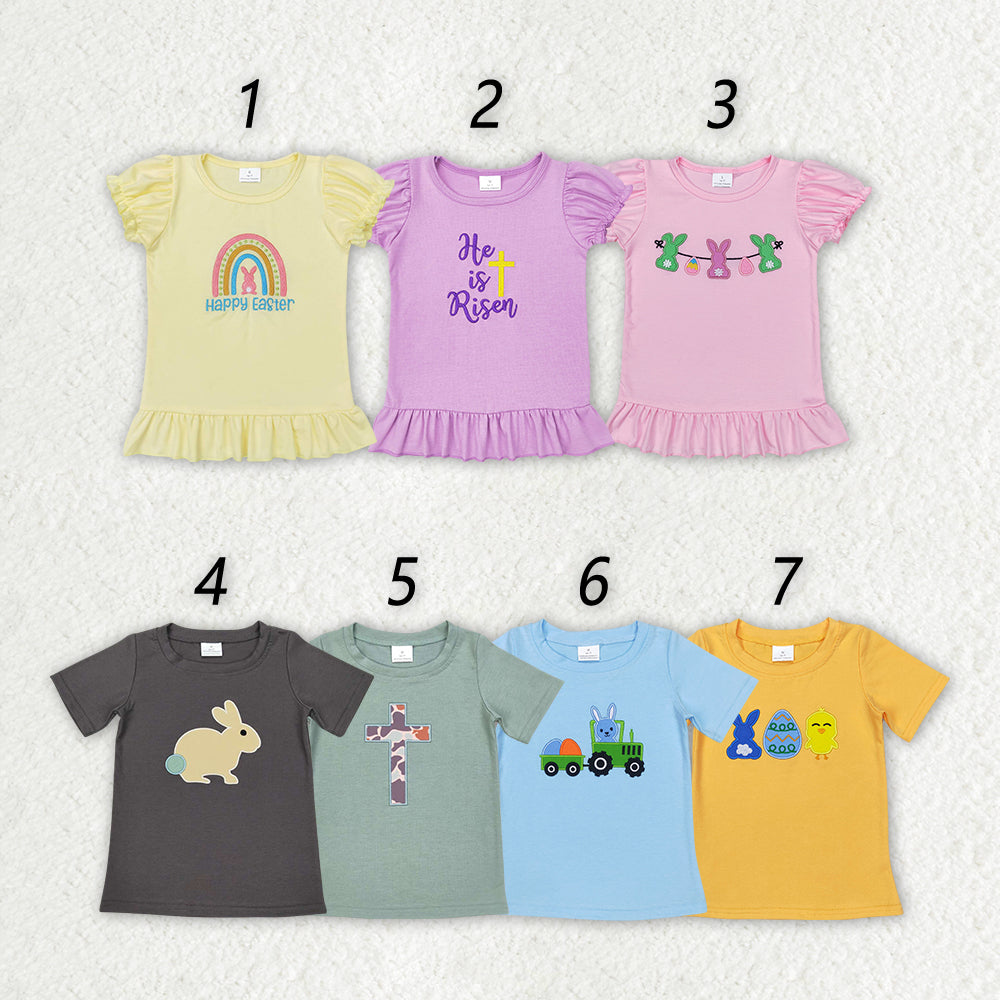 Sibling Boys Baby Girls Easter Cotton Embroidery Short Sleeve Shirt Tops