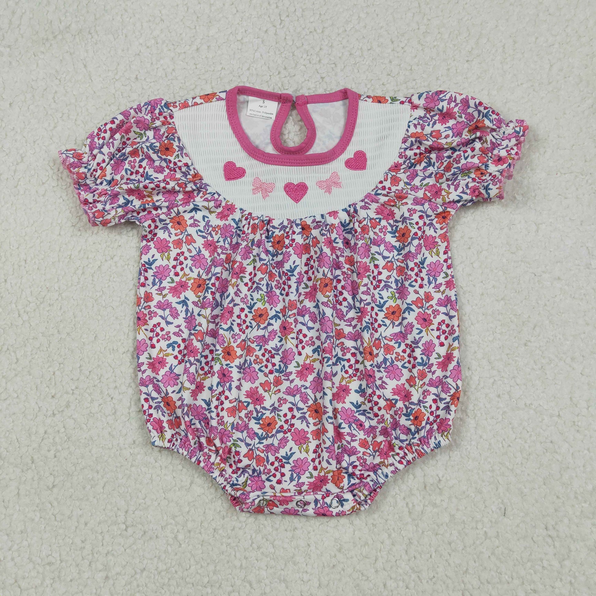 Smocked Hearts Bows Baby Girls Flowers Valentines Ruffle Rompers
