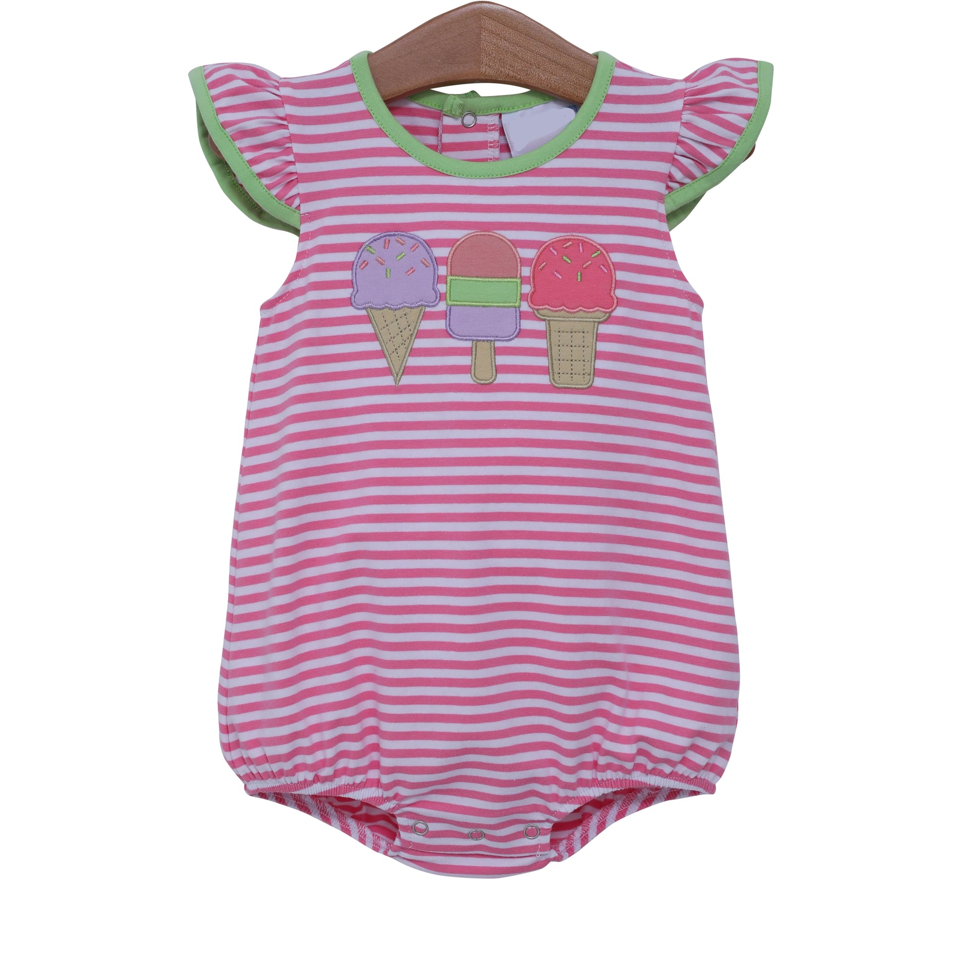 Preorder moq 5 Baby Infant Girls Pink Stripe Short Sleeves Ice Cream Rompers