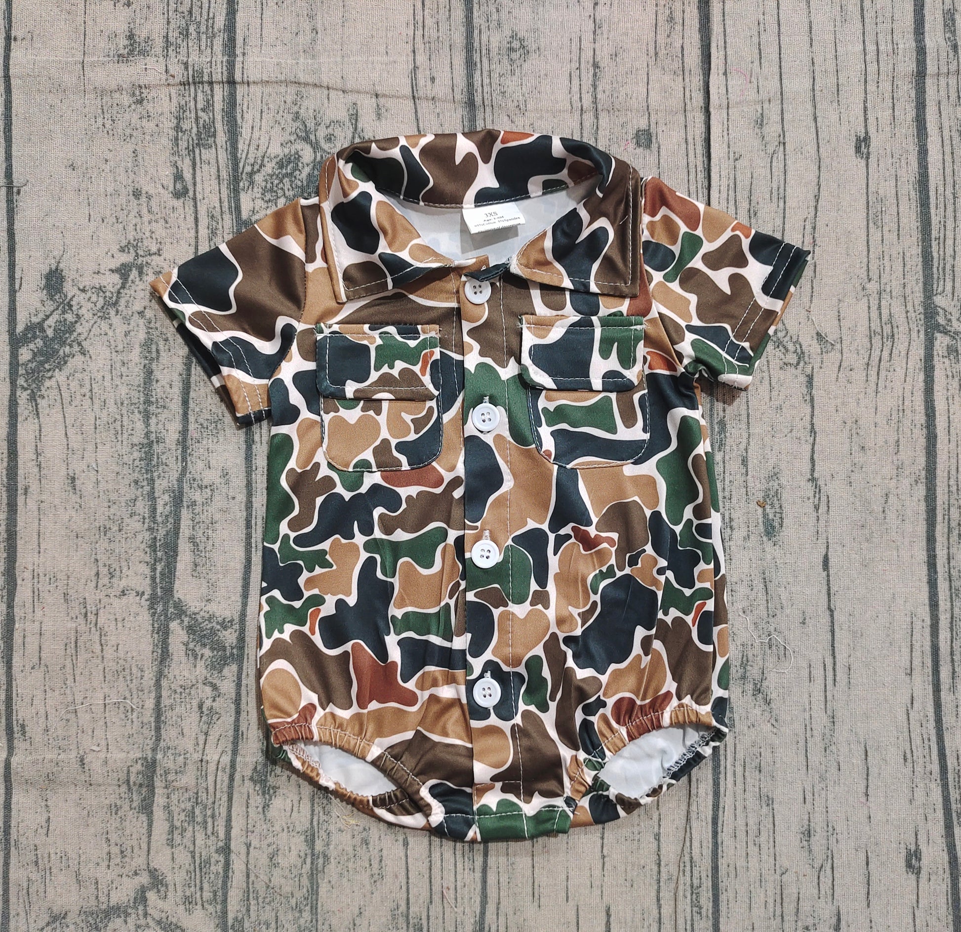Baby Boys Southern Dark Brown Camo Button Pockets Rompers Preorder