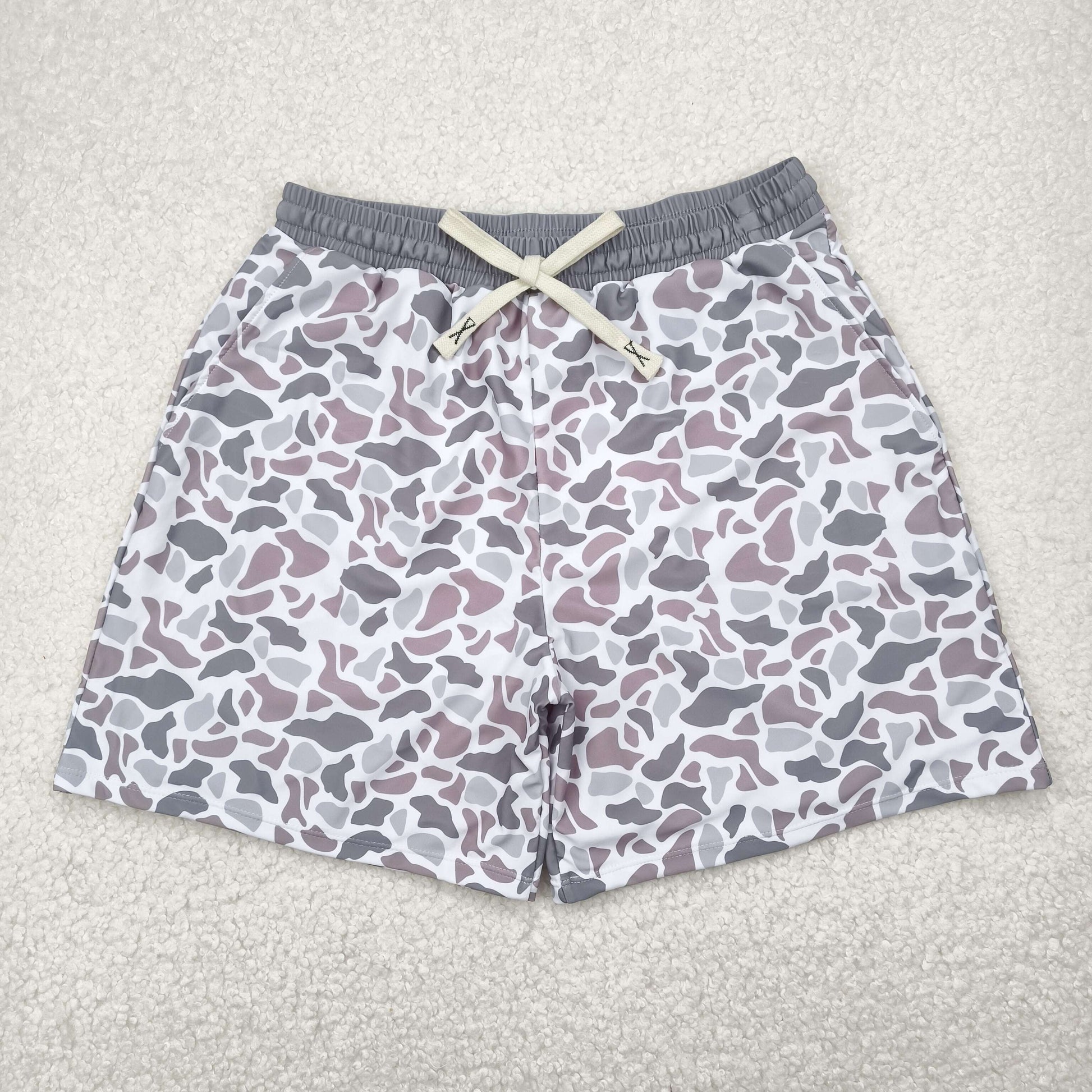 USA Shop Adult Man Grey Camo Bottom Trunk Drawstrings Shorts Swimwear
