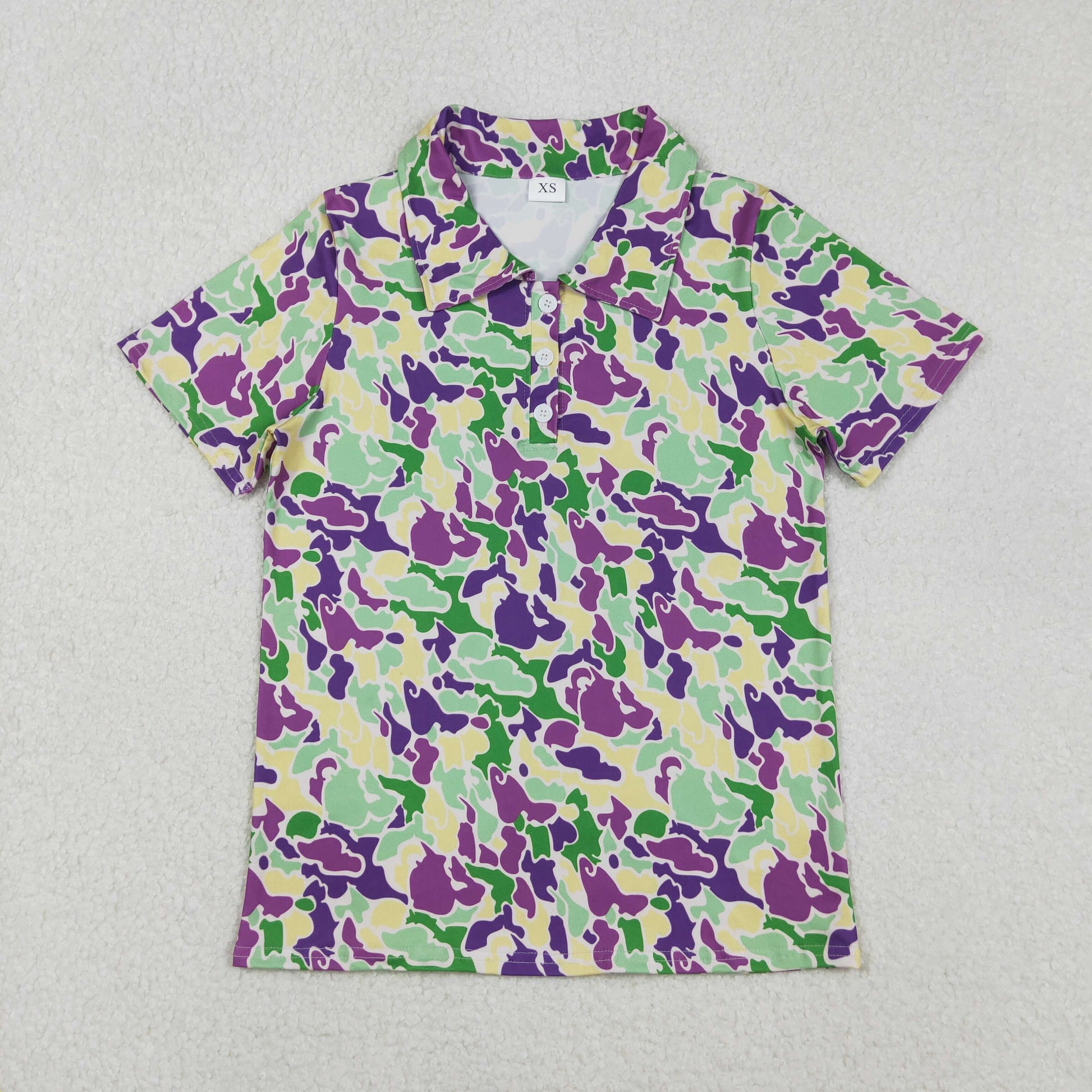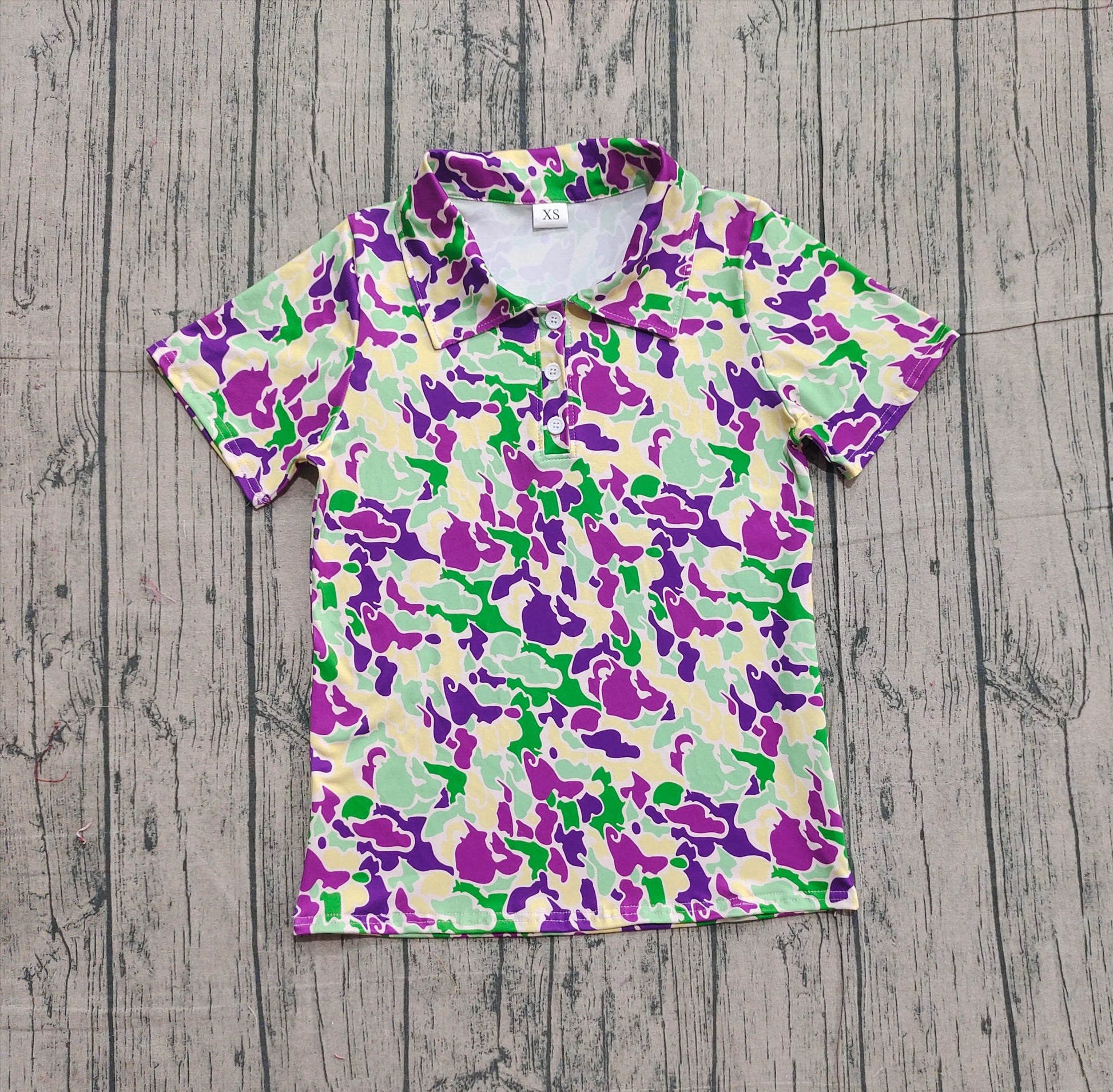Adult Men Mardigras Camo Button Polo Shirts Top