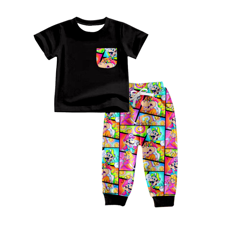 Baby Boys Black Pocket Shirt Game Pants Clothes Sets preorder(moq 5)