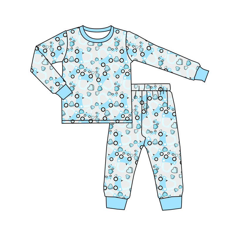 Baby Boys Blue Valentines Tractor Shirt Pants Pajamas Clothing Sets Preorder(moq 5)