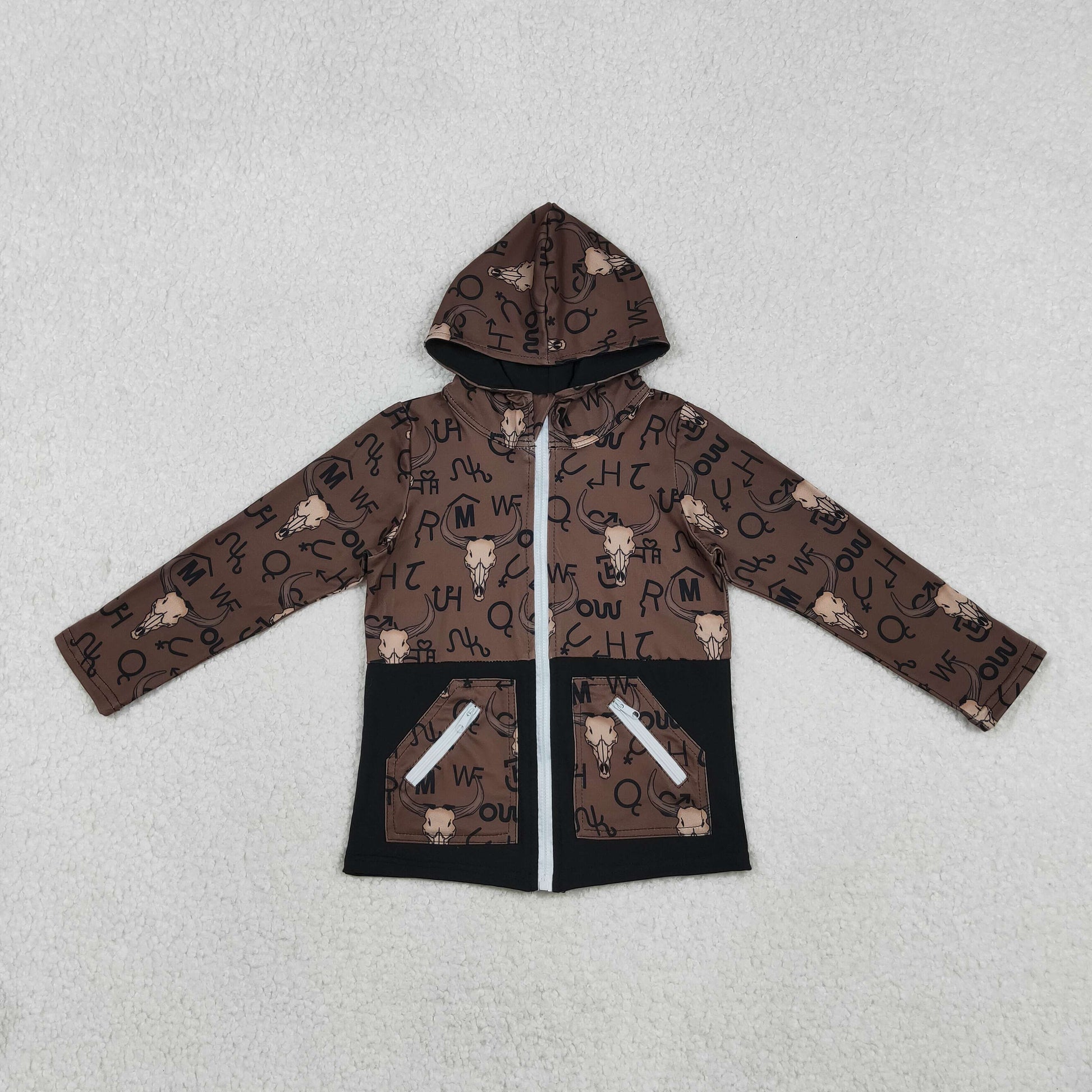 Baby Boys Brown Bull Skulls Pocket Zipper Western Hoodies Jackets Top