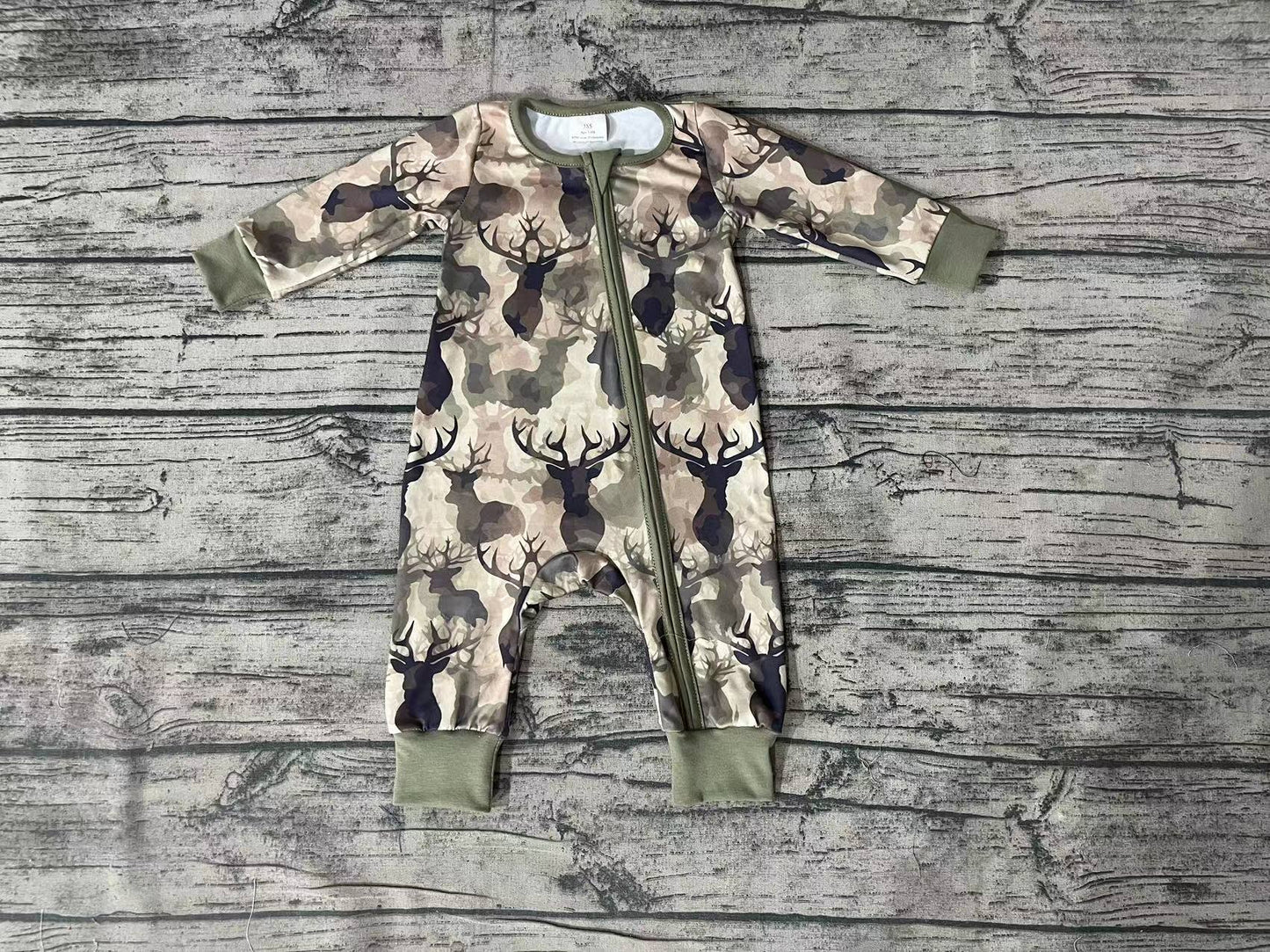 Baby Boys Camo Deer Zip Long Sleeve Rompers