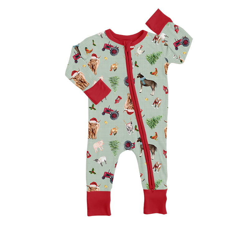 Baby Boys Christmas Farm Western Long Sleeve Zip Rompers preorder(moq 5)