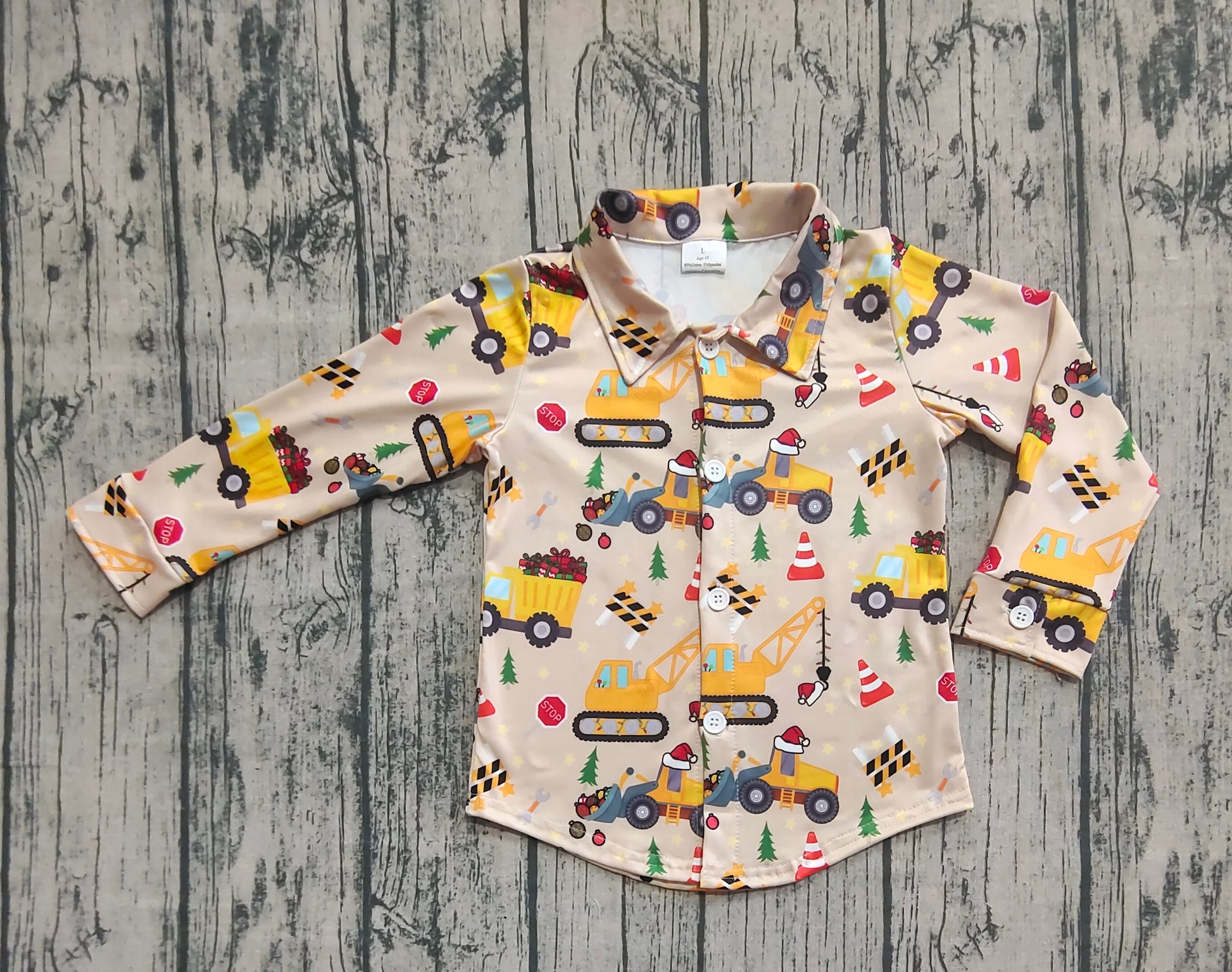 Baby Boys Christmas Hats Excavators Button Shirts Top