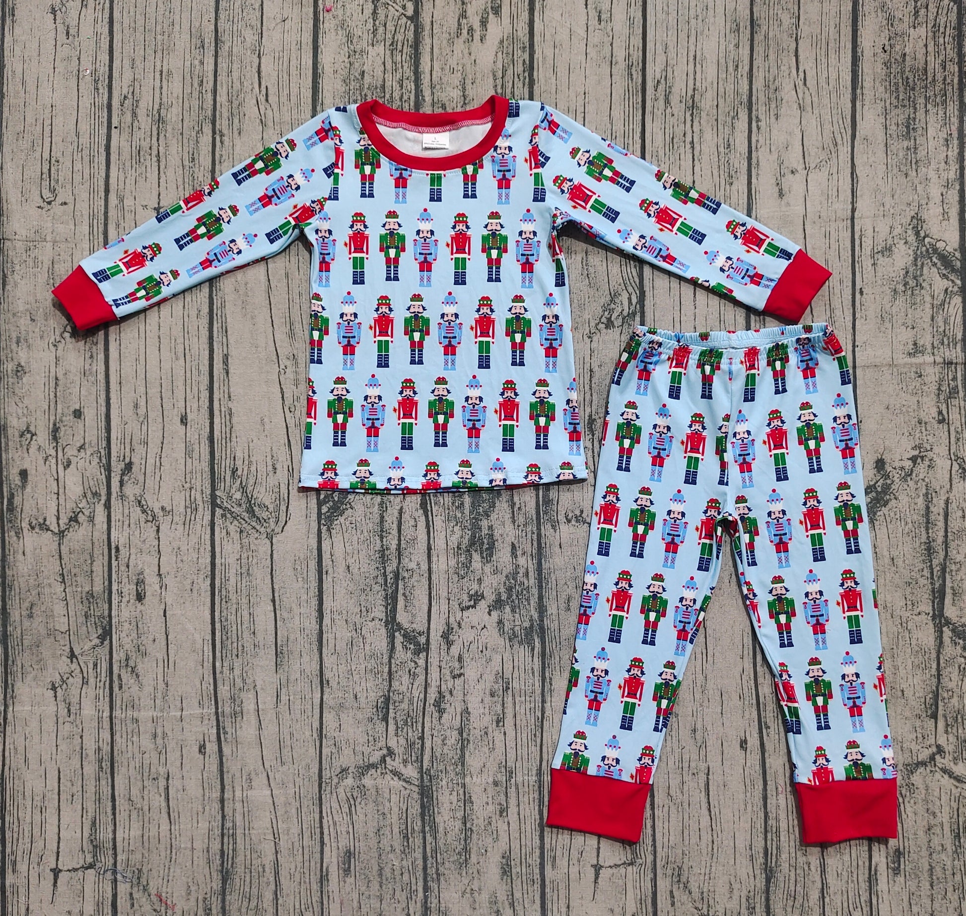 Baby Boys Christmas Soldiers Blue Top Pants Pajamas Sets