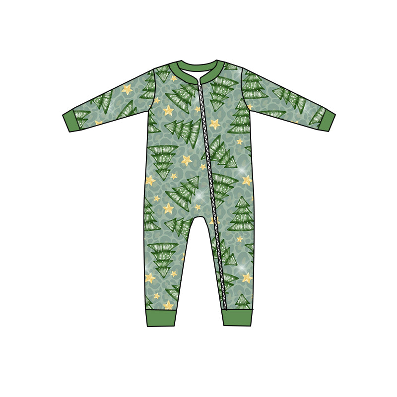Baby Boys Christmas Tree Green Zip Rompers preorder(moq 5)