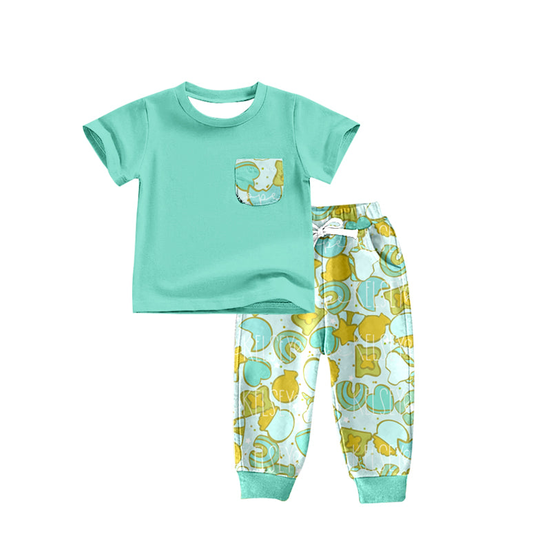 Baby Boys Green Pocket Tee St Patrick Day Pants Clothing Sets Preorder(moq 5)