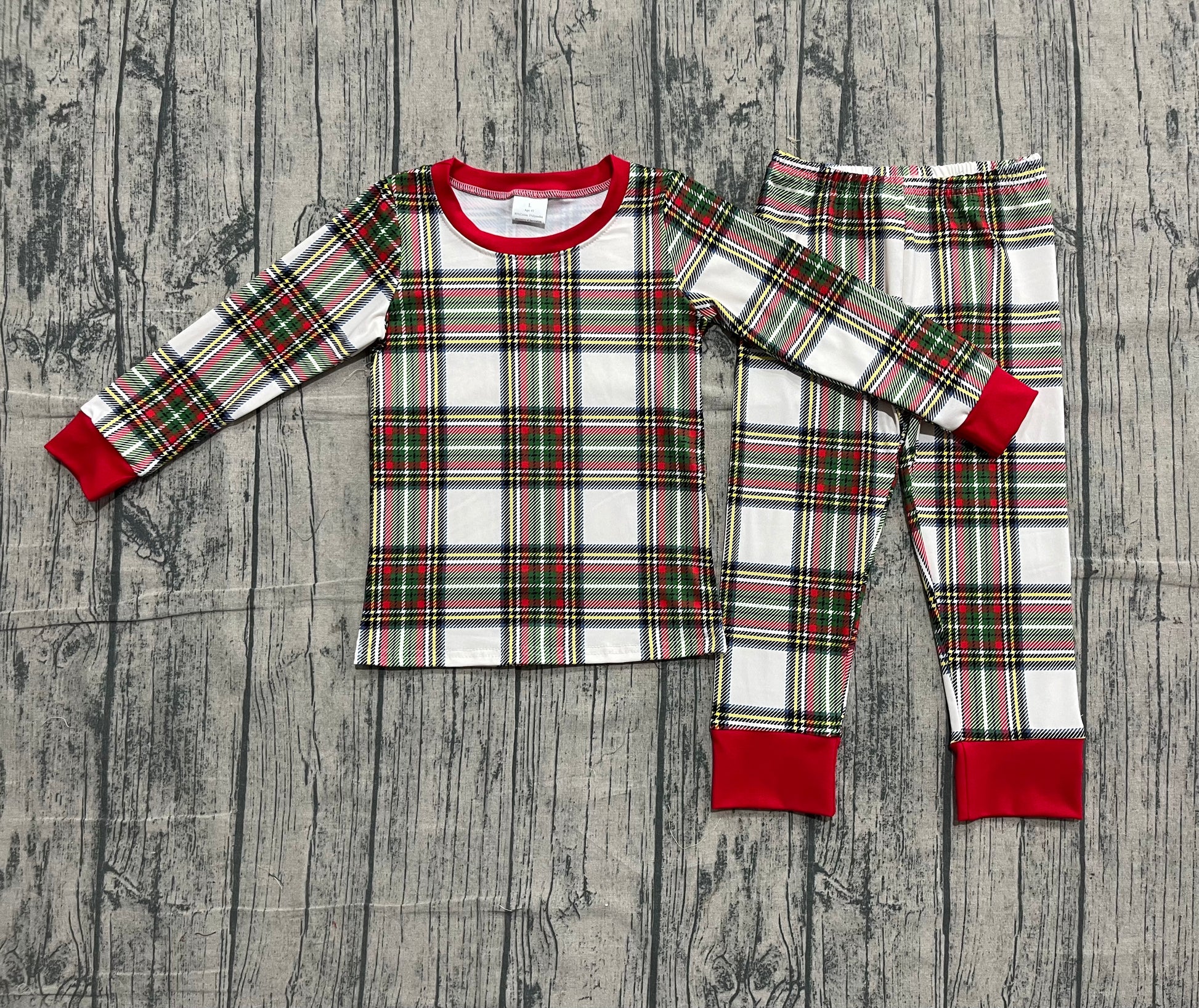 Baby Boys Green Red Checked Top Pants Christmas Pajamas Sets