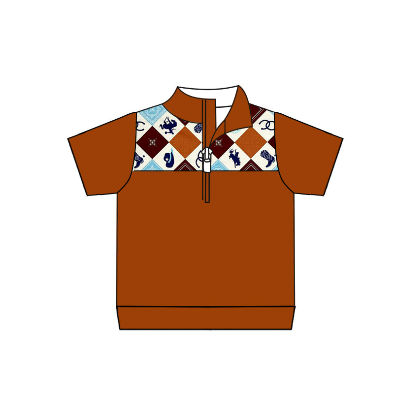Baby Boys Horse Aztec Short Sleeve Zip Tee Shirts Tops Preorder(moq 5)