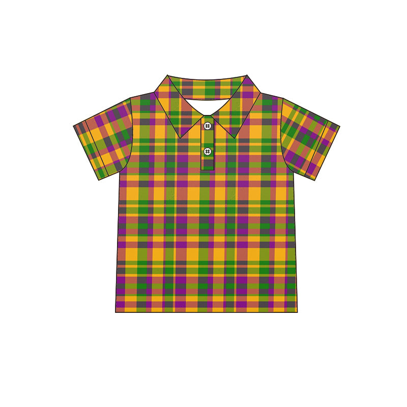 Baby Boys Mardi Gras Plaid Yellow Purple Buttons Shirts Tops preorder(moq 5)
