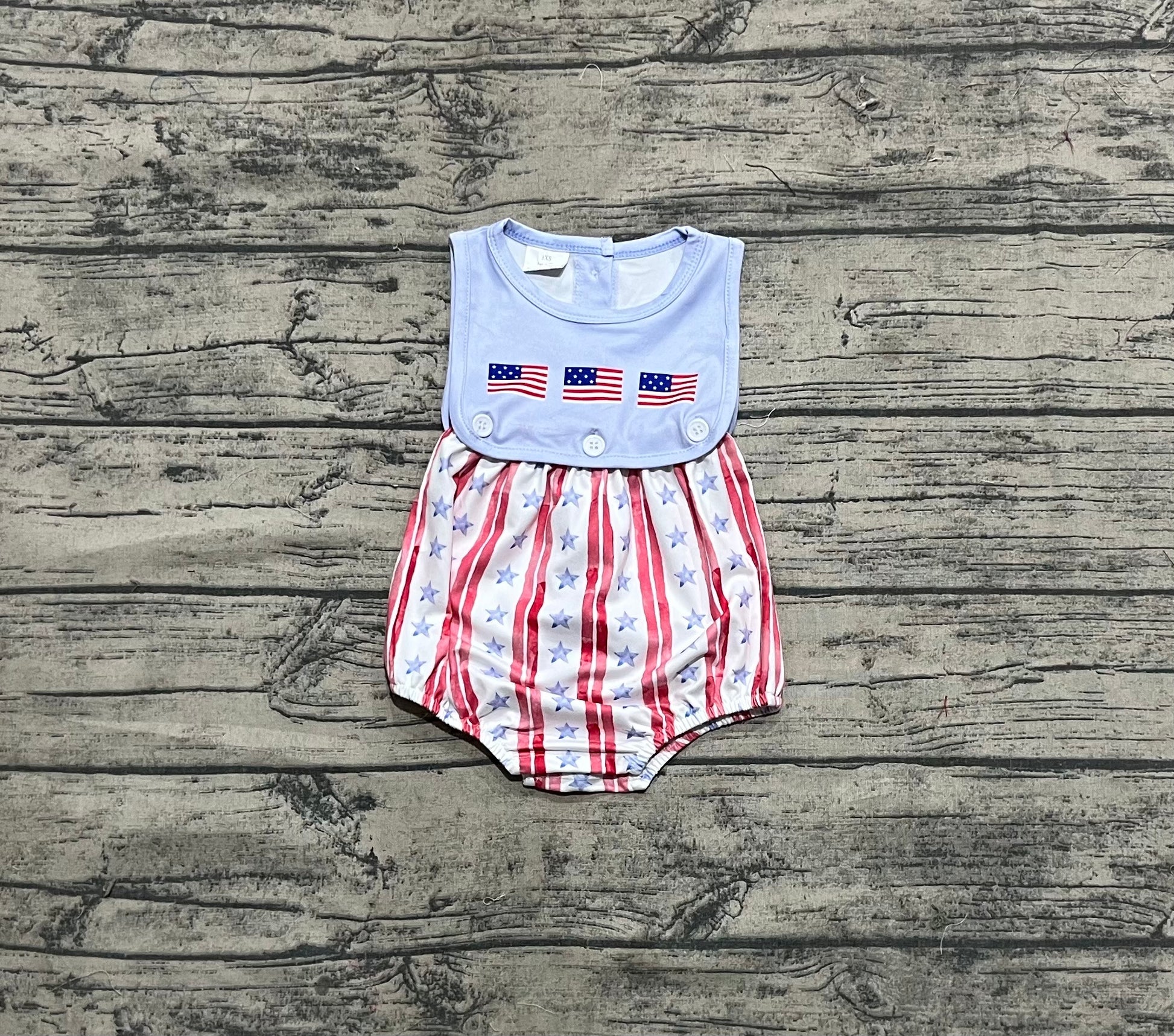 Baby Boys Sleeveless Flags Red Stripe Stars 4th Of July Rompers