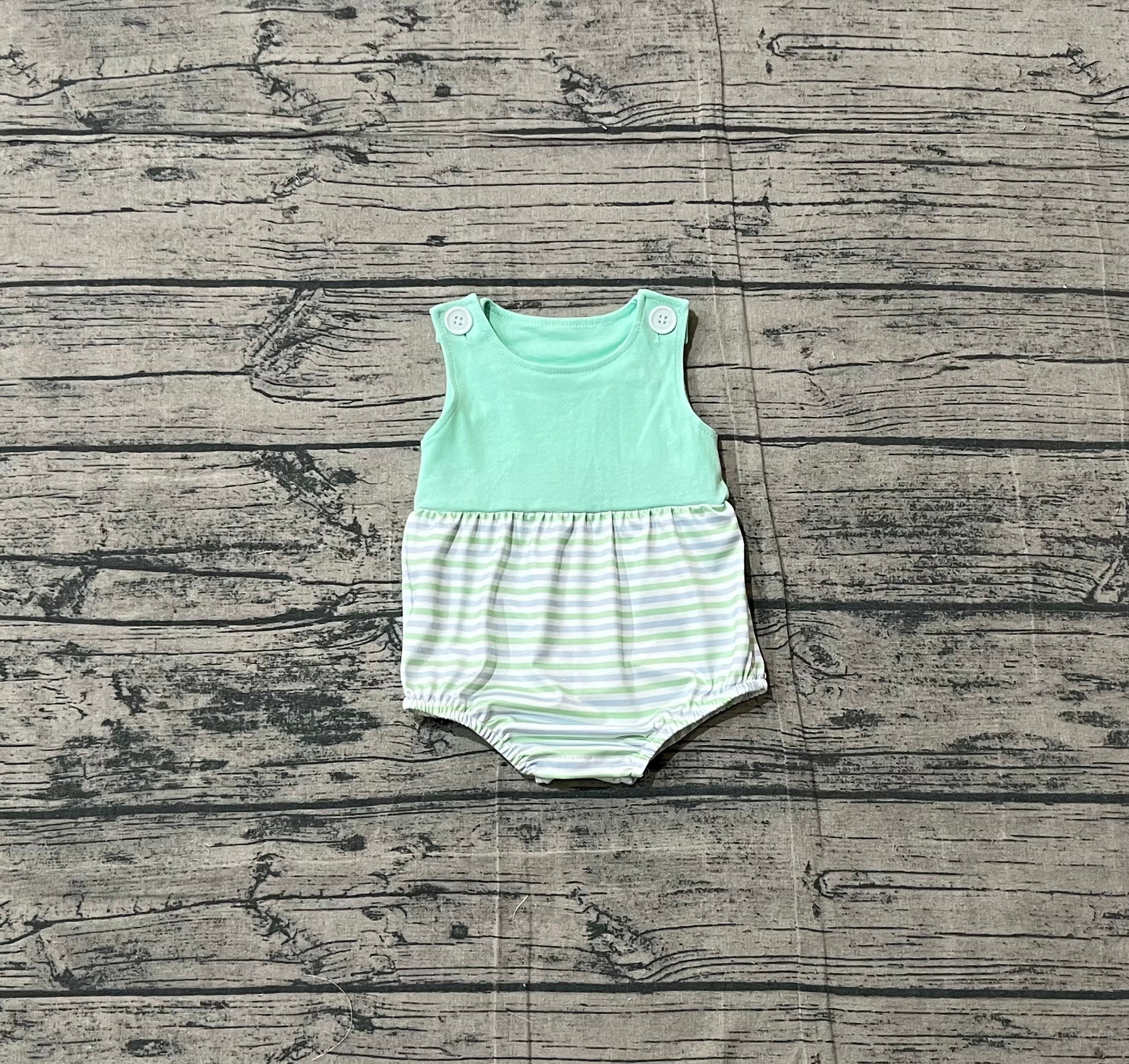 Baby Boys Sleeveless Green Stripe Rompers Preorder