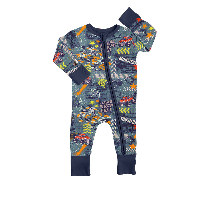 Baby Boys Tractor Cars Long Sleeve Zip Rompers preorder(moq 5)