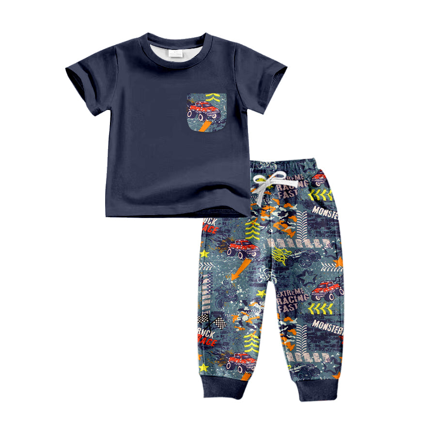 Baby Boys Tractor Cars Pocket Shirt Pants Clothes Sets Preorder(moq 5)