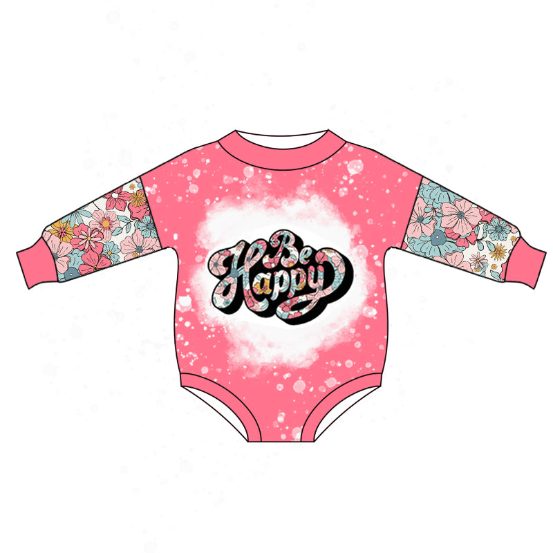 Baby Girls Be Happy Long Sleeve Flowers Rompers preorder(moq 5)