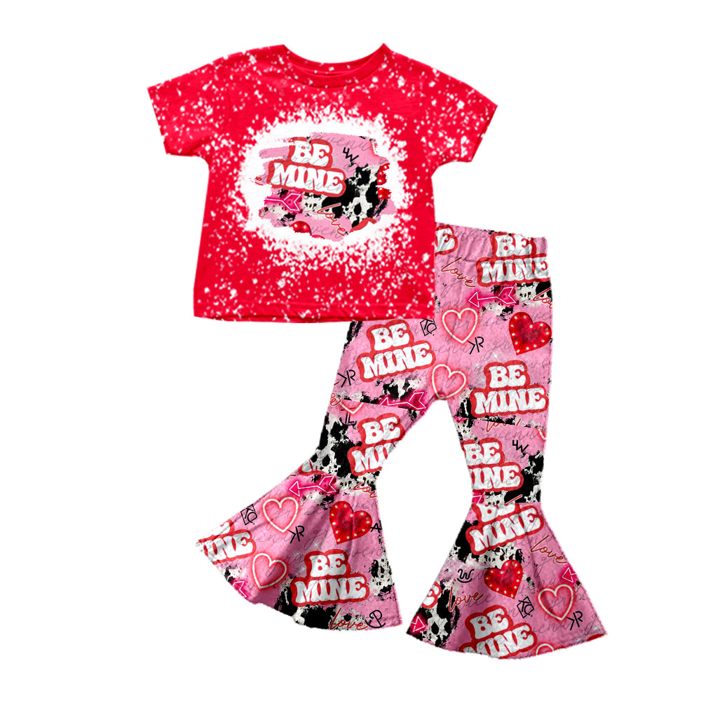 Baby Girls Be Mine Short Sleeve Red Tee Shirt Top Bell Pants Clothing Sets Preorder(moq 5)
