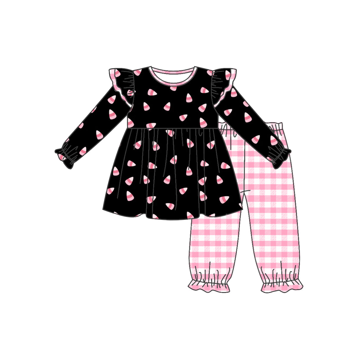 Baby Girls Black Pink Candy Tunic Checkered Pants Clothes Sets Preorder(moq 5)