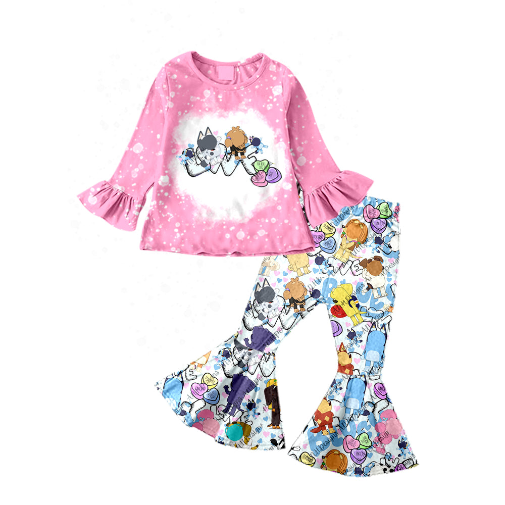 Baby Girls Blue Cartoon Dogs Bell Pants Clothes Sets preorder(moq 5)