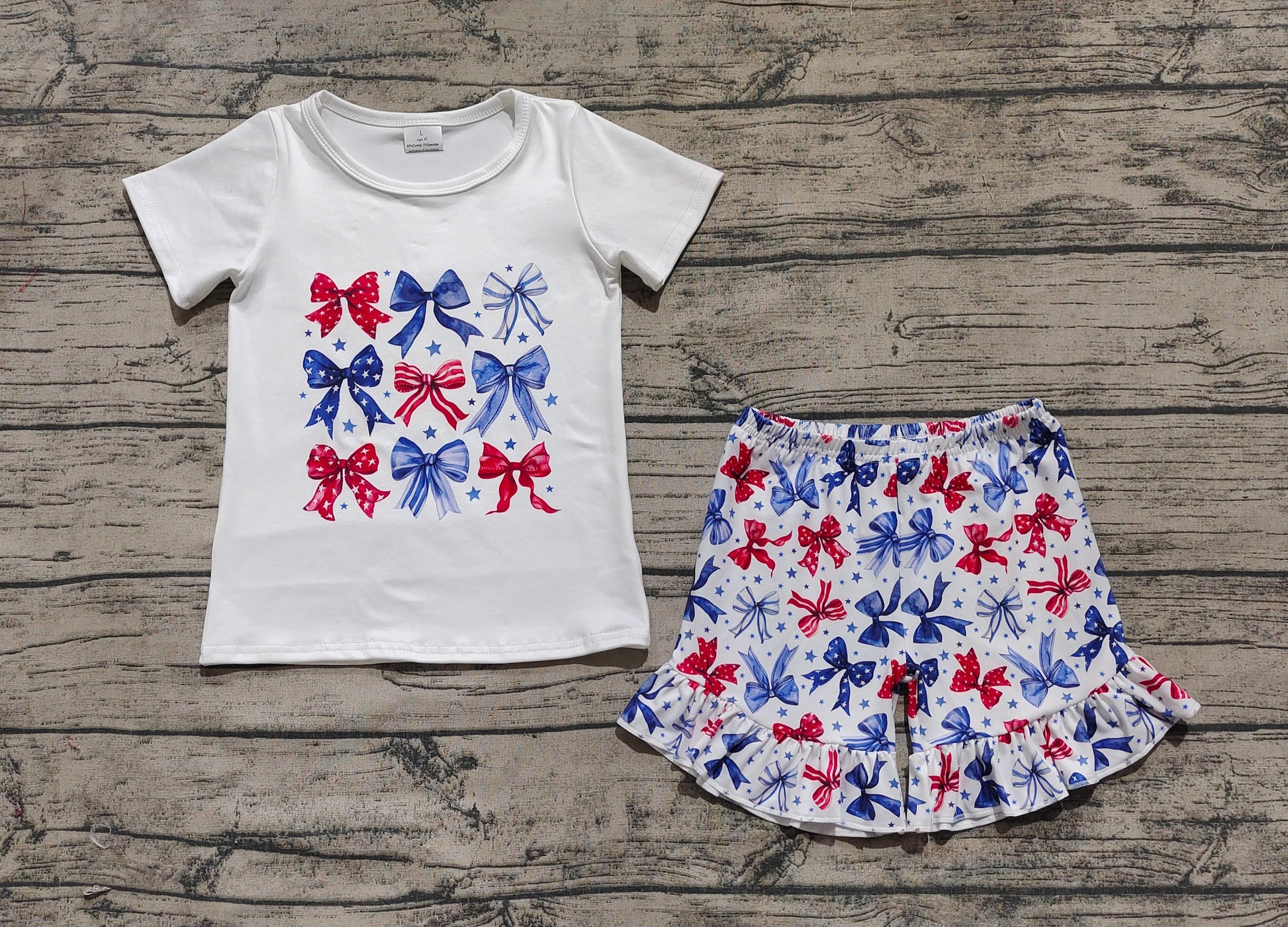 Baby Girls Blue Red Bows Stars Top Ruffle Shorts 4th Of July Sets