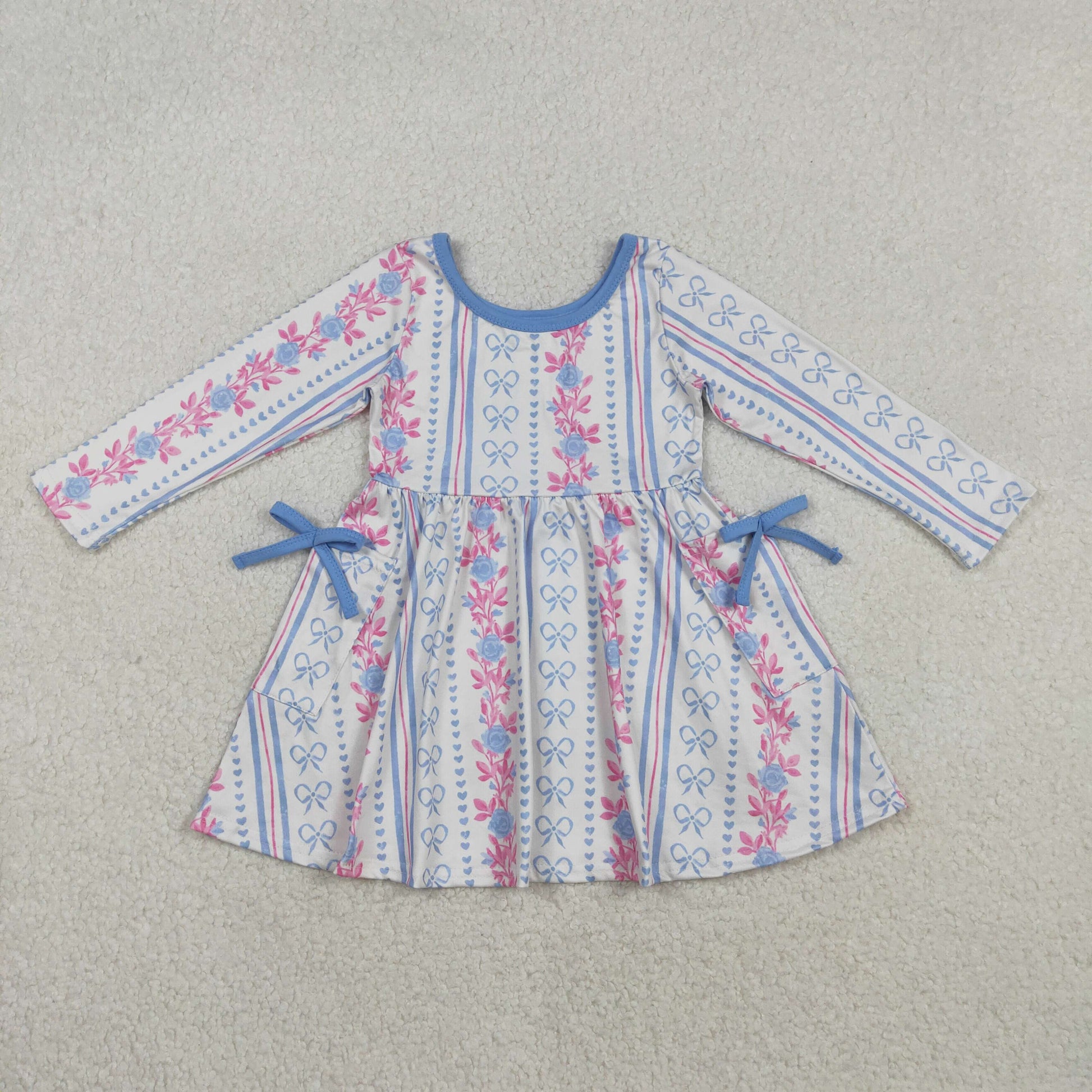 Baby Girls Bows Flowers Stripe Pockets Knee length Dresses