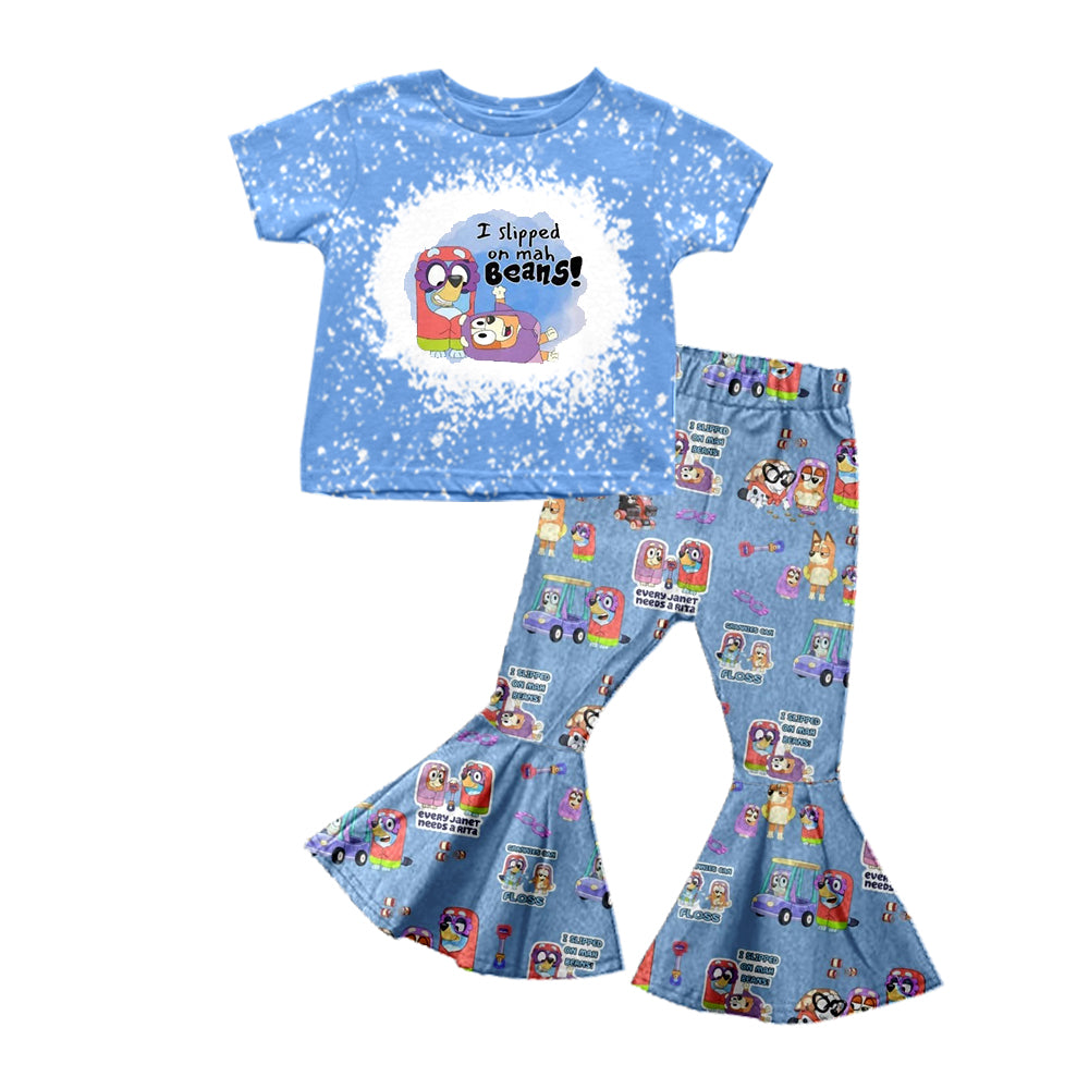 Baby Girls Cartoon Dogs Granny Shirt Blue Bell Pants Clothes Sets Preorder(moq 5)
