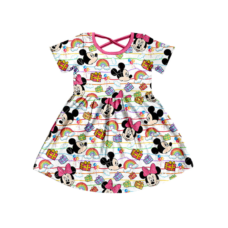 Baby Girls Cartoon Present Short Sleeve Knee Length Dresses Preorder(moq 5)