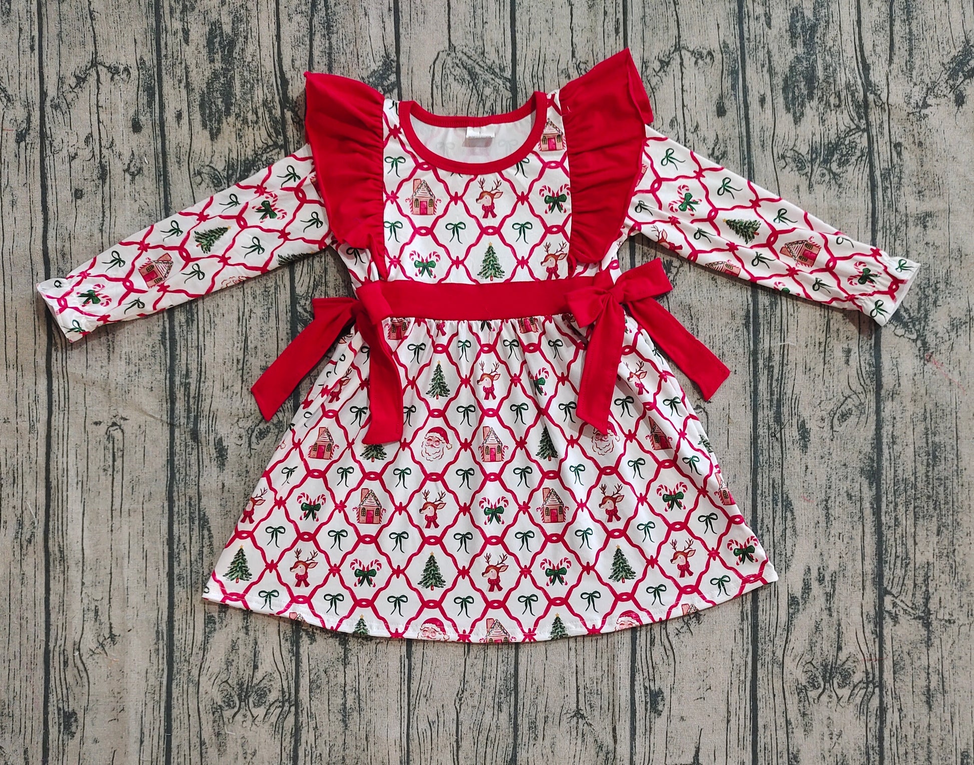 Baby Girls Christmas Deers Bows Trees Knee Length Dresses