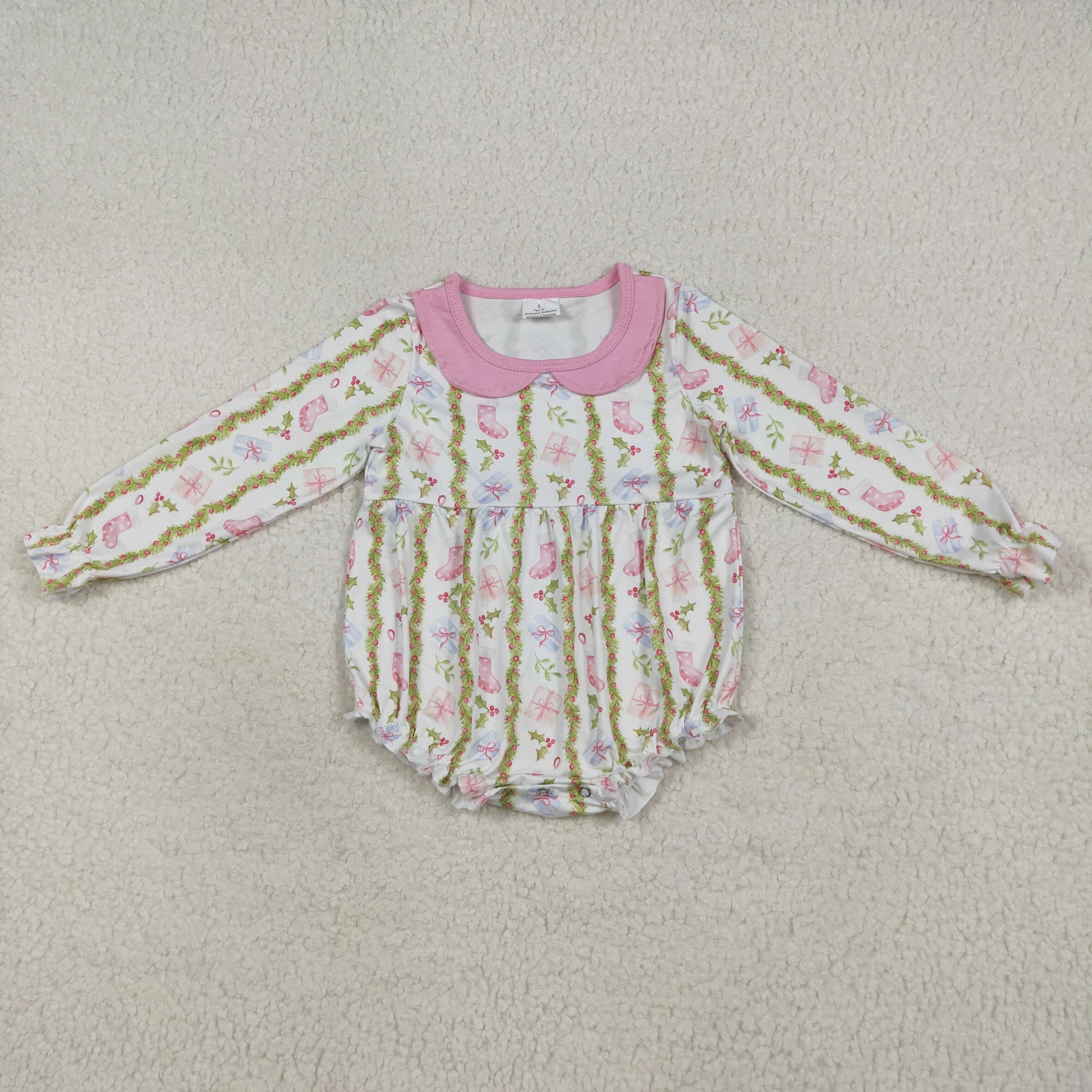 Baby Girls Christmas Gifts Floral Stripe Ruffle Rompers