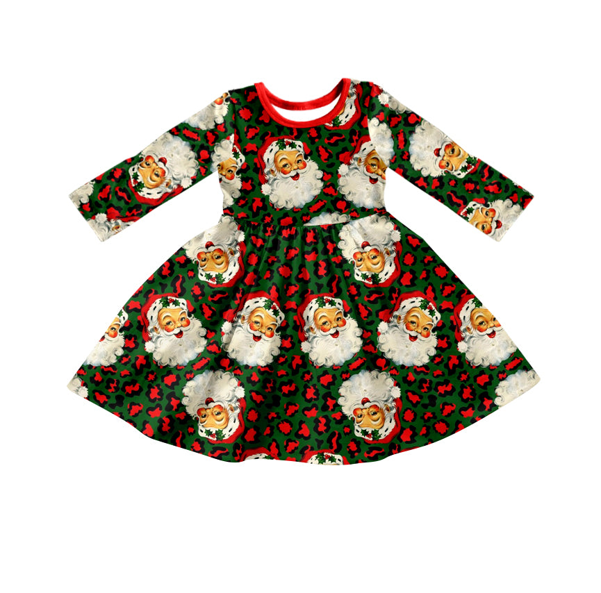 Baby Girls Christmas Leopard Santa Knee Length Dresses preorder