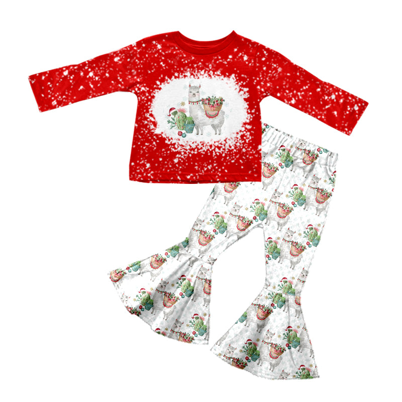 Baby Girls Christmas Llama Red Top Bell Pants Clothes Sets preorder(moq 5)