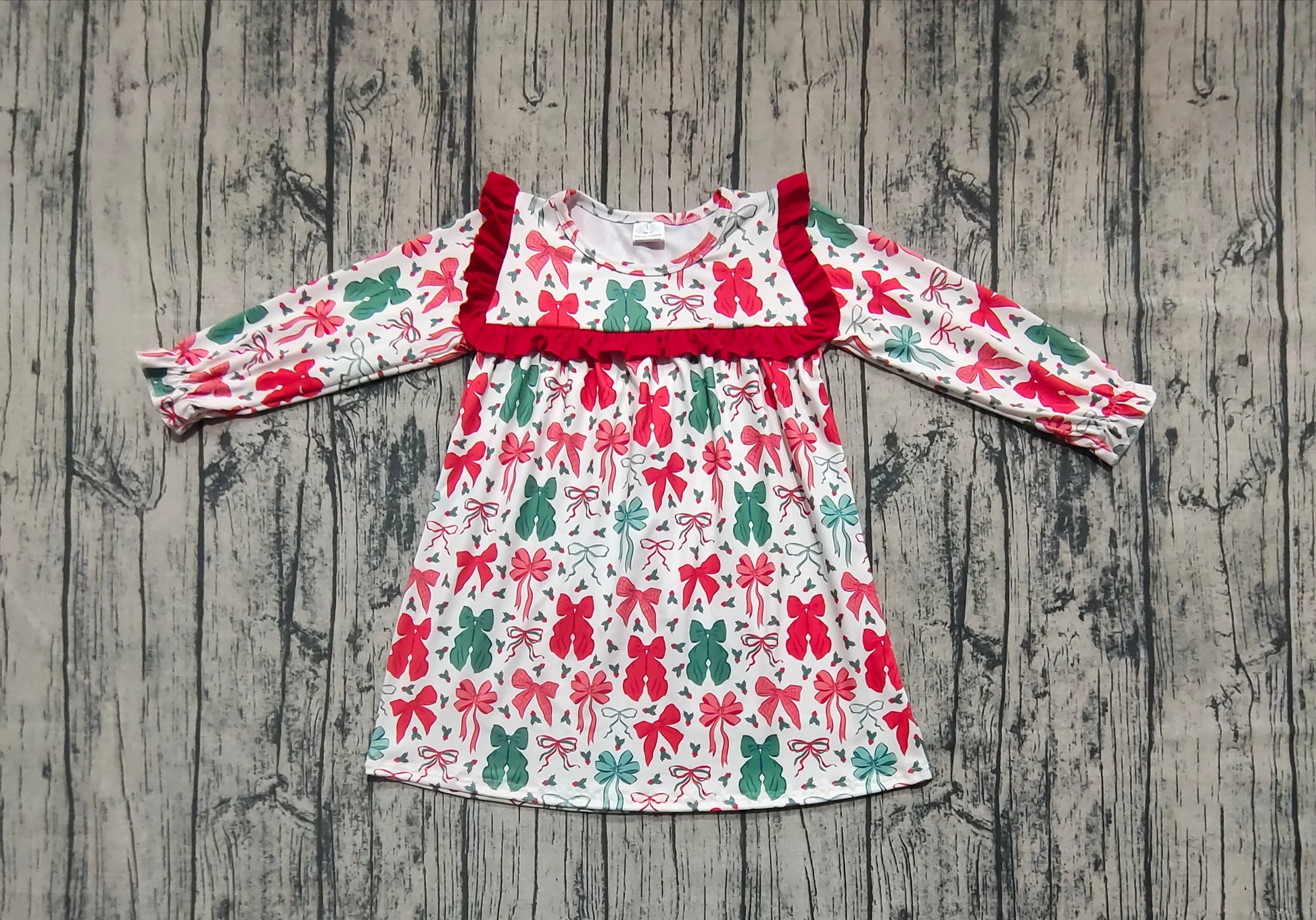 Baby Girls Christmas Red Green Bows Knee Length Dresses