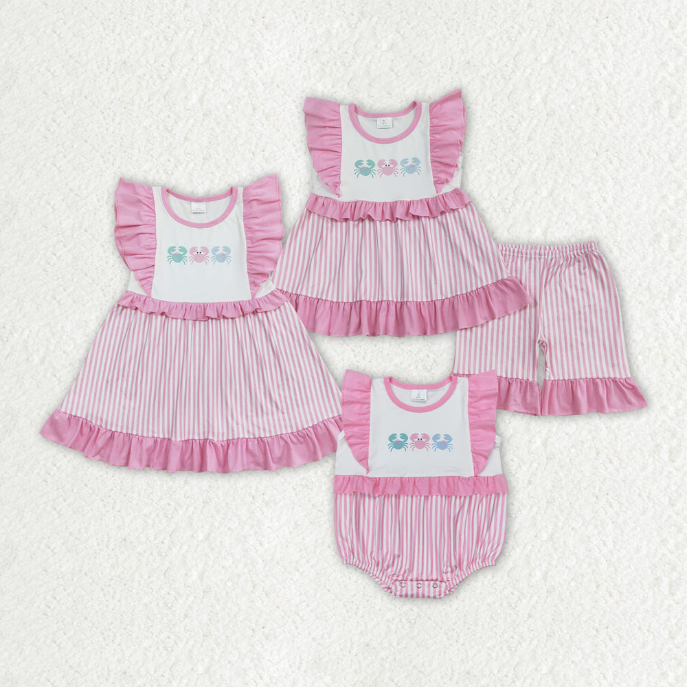 Baby Girls Crabs Pink Summer Sibling Rompers Dresses Clothes Sets