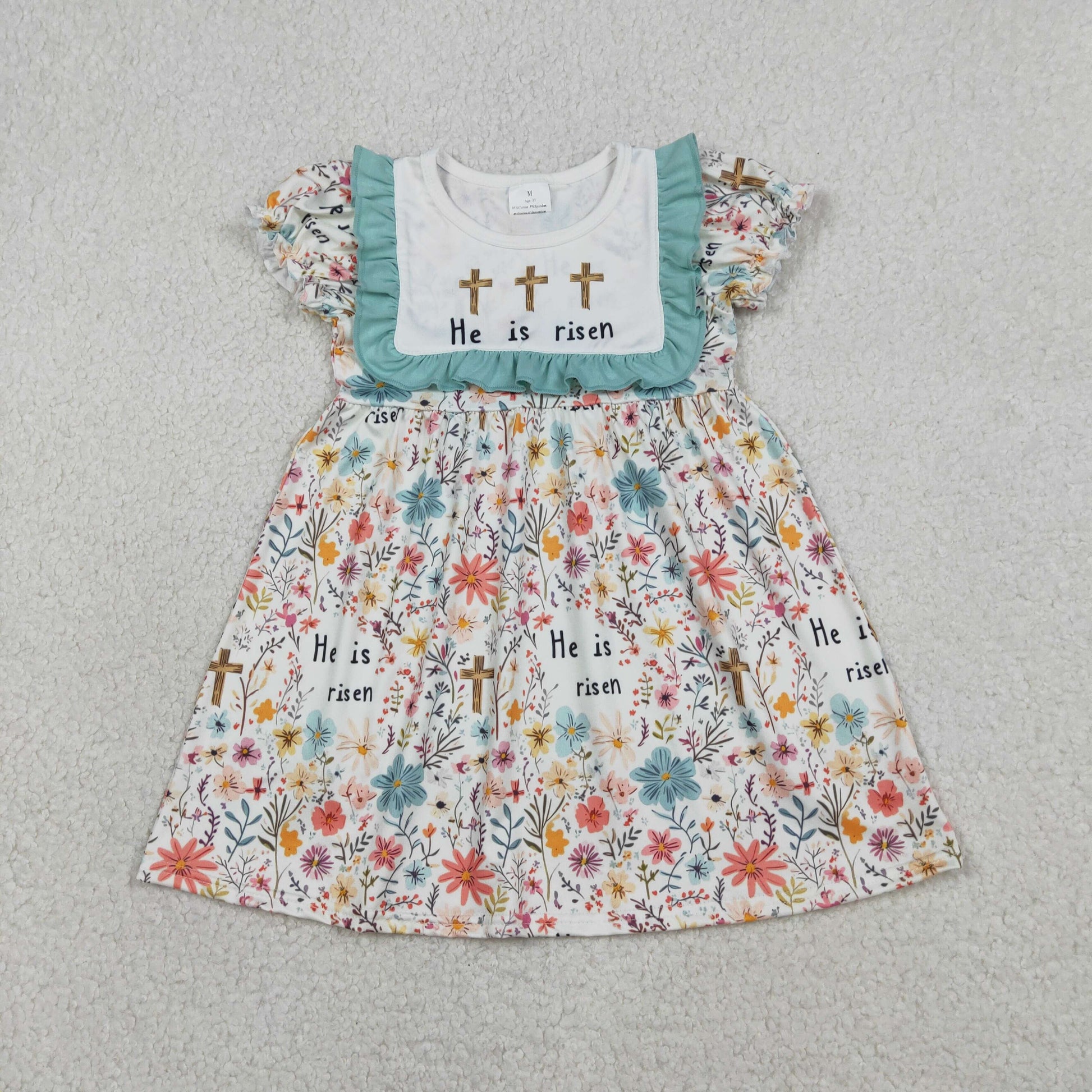 Baby Girls Crosses He is Risen Flowers Easter Knee Length Dresses