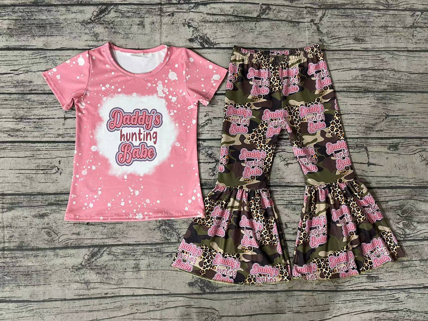Baby Girls Daddy Hunt Babe Shirt Camo Bell Pants Clothes Sets